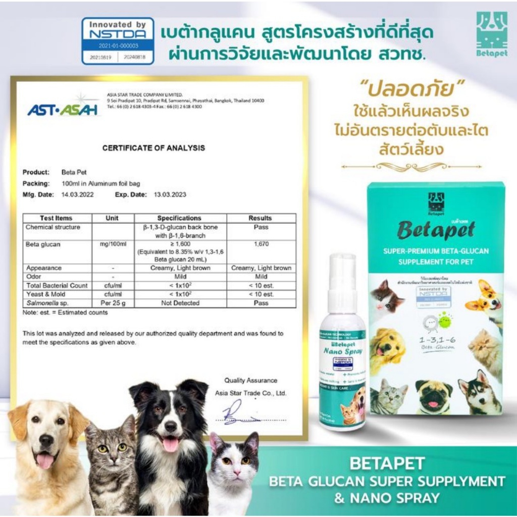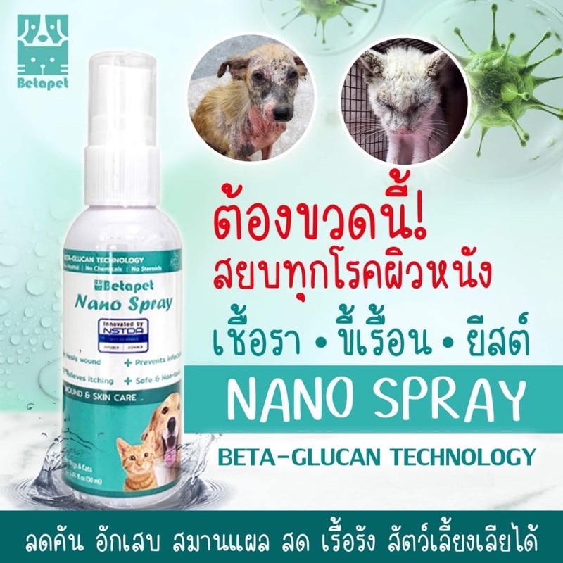 ‼️ เห็นผลไวมาก ‼️ BETAPET สเปรย์นาโน เลียได้ ฉีด พ่น แผลแห้งไว ผิวหนังชุ่มชื้น เบต้ากลูแคน สำหรับสัตว์เลี้ยง สุนัข แมว