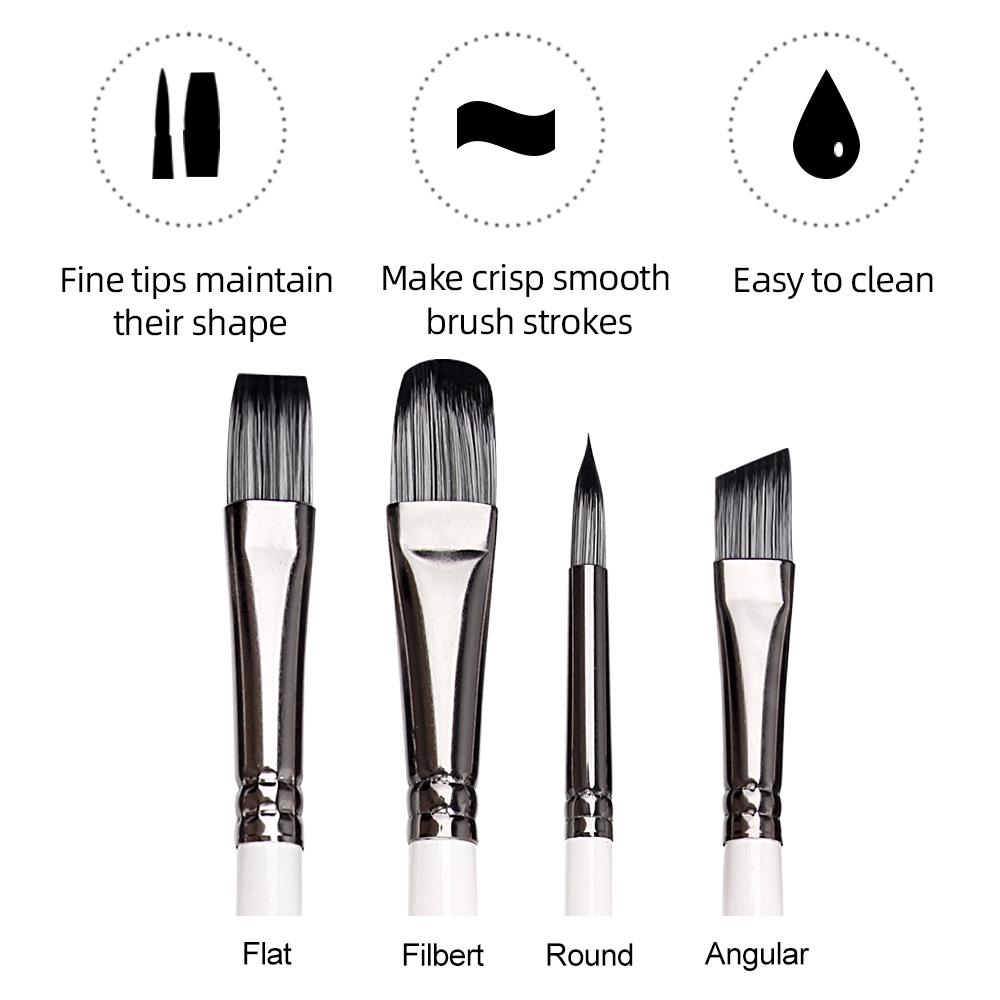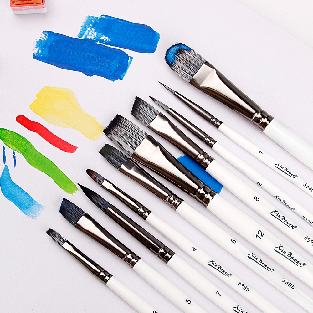 Ossayi ชุดแปรงระบายสี ปลายแหลม แบน กลม ไนล่อน สําหรับสีน้ํามัน อะคริลิค ใบหน้า เล็บ ขนาดเล็ก 10 ชิ้น