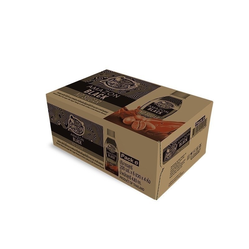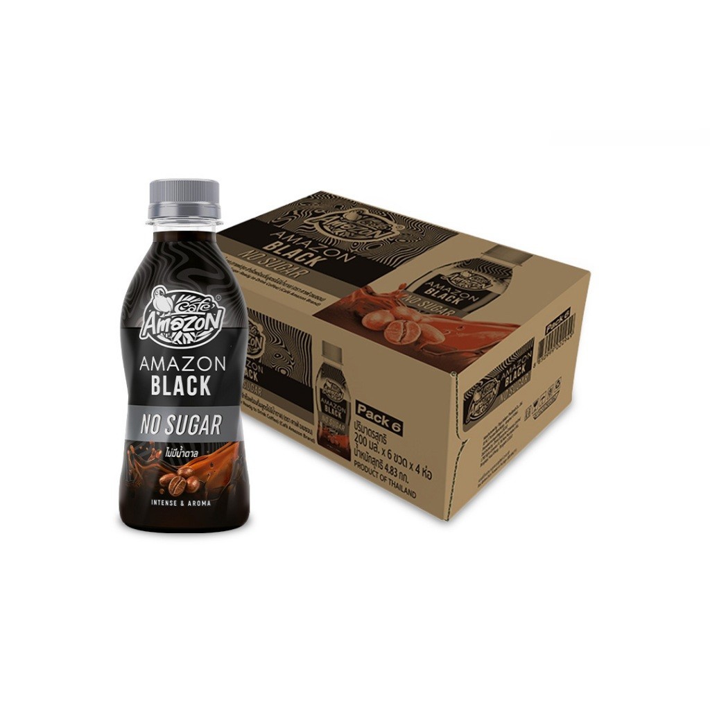 [ส่งในกทม.และปริมณฑล อยุธยา เชียงใหม่ ลำพูน] อเมซอน แบล็ค ไม่มีน้ำตาล (ตรา คาเฟ่ อเมซอน) 200 มล. x 24 ขวด