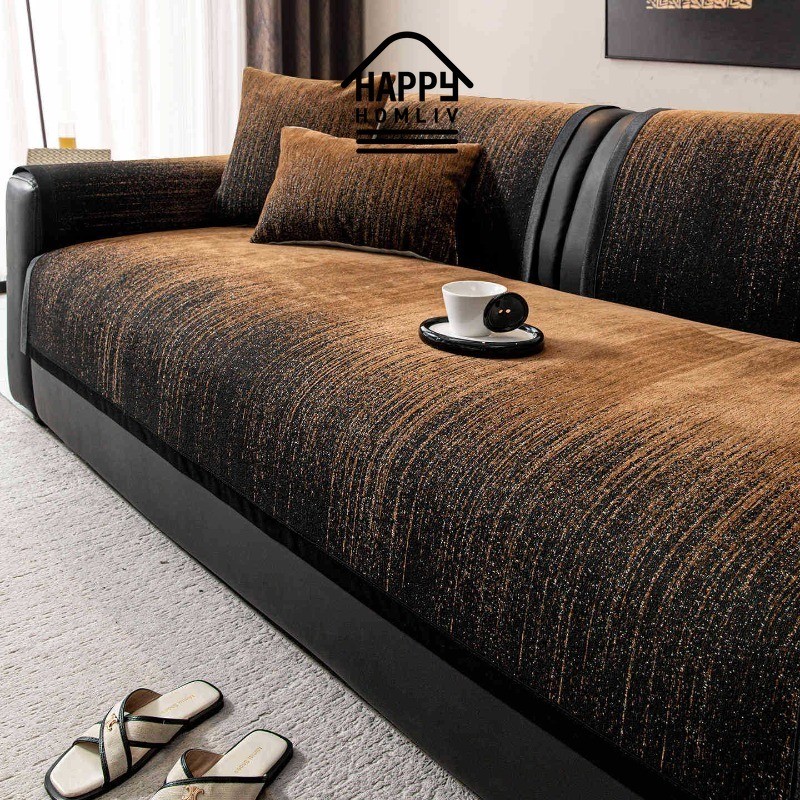 HAPPY HOMLIV Chenille ฝาครอบป้องกันโซฟากันลื่น Four Seasons Universal เตียงโซฟาเหมาะสําหรับ