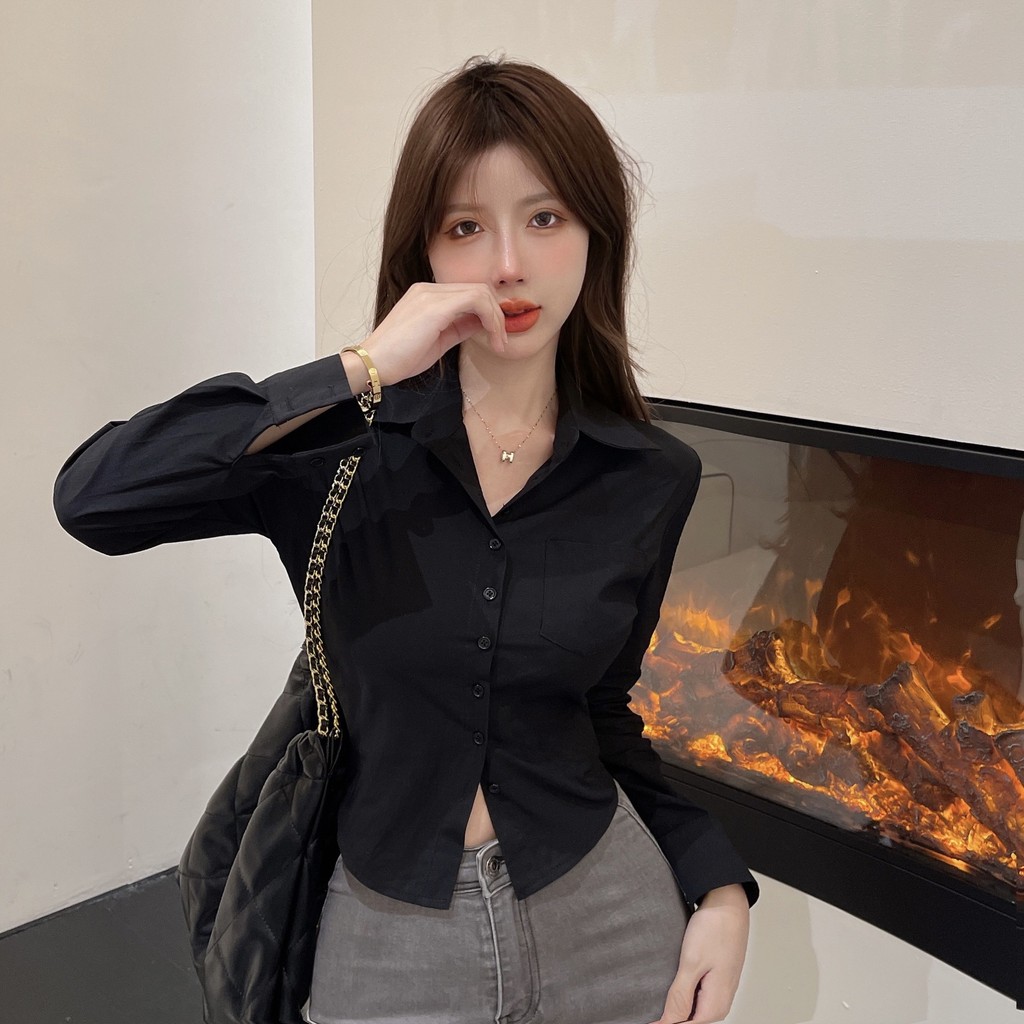 เสื้อเชิ้ตผู้หญิงคอปกโปโล ไซส์S-7XL สีดำ ขาว ฟ้า ทรงสวย น่ารัก สไตล์เกาหลี สําหรับผู้หญิง