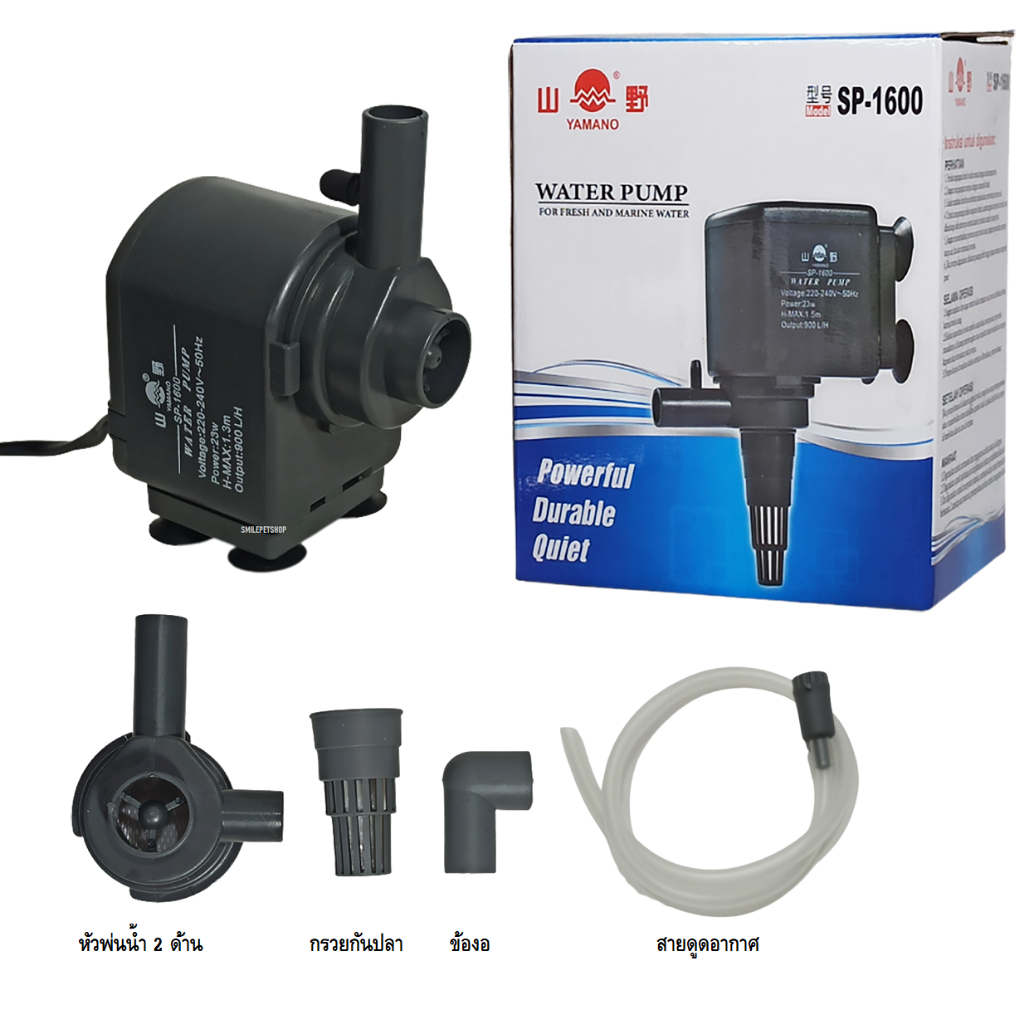 YAMANO SP-1600 (ปั๊มน้ำสำหรับทำระบบกรอง หมุนเวียนน้ำ ทำน้ำพุ น้ำตก เหมาะสำหรับตู้ปลา 30-36 นิ้ว ความแรง 900 L/Hr)