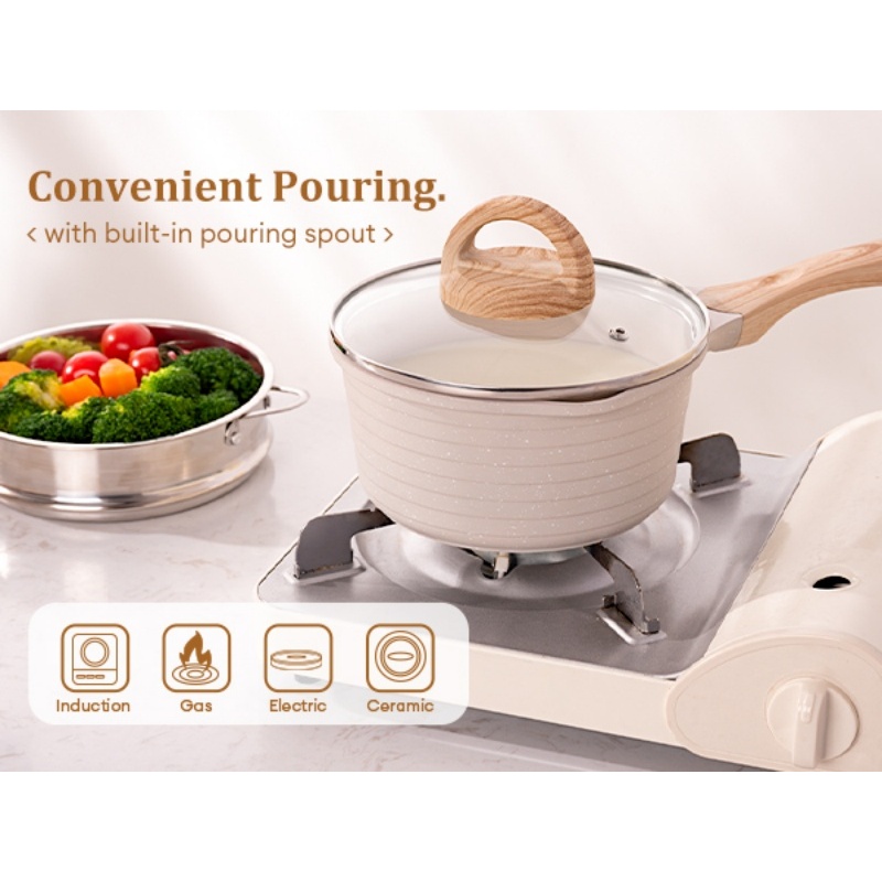 JEETEE ชุดกระทะ กระทะเคลือบหินอ่อน 4PCS,28CM wok +24CM กระทะ+24CMหม้อซุป+18CM หม้อนม กระทะไม่ติดใช้ได้กับเตาทุกประเภท