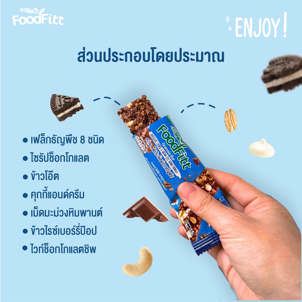 ฟู๊ดฟิต กราโนล่าบาร์ รสช็อกโกแลตคุกกี้แอนด์ครีม (12 แท่ง) ซองเดอร์ Xongdur Foodfitt Granola Bar [325-012]