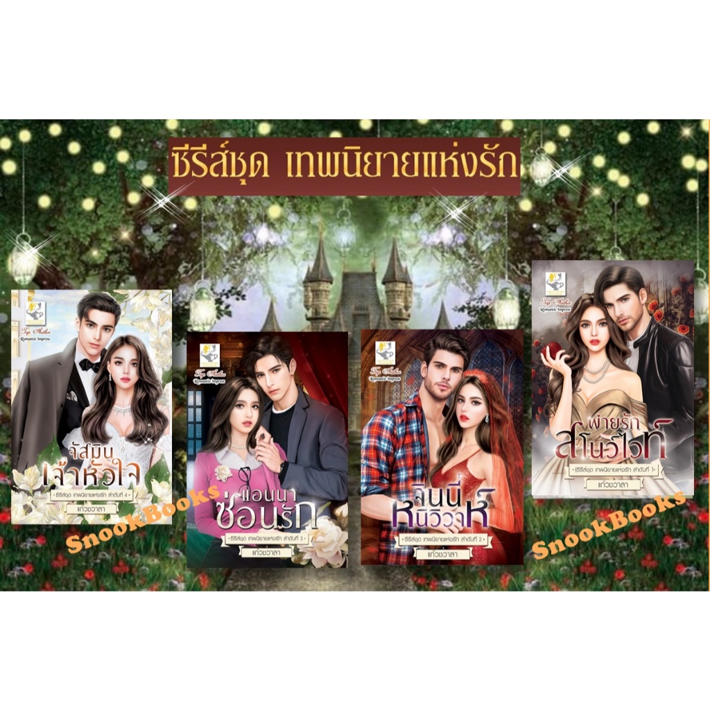 ซีรี่ส์ชุด เทพนิยายแห่งรัก 4 ลำดับ 1.พ่ายรักสโนว์ไวท์ 2.แอนนาซ่อนรัก 3.จินนี่หนีวิวาห์ 4.จัสมินเจ้าหัวใจ โดย แก้วชวาลา