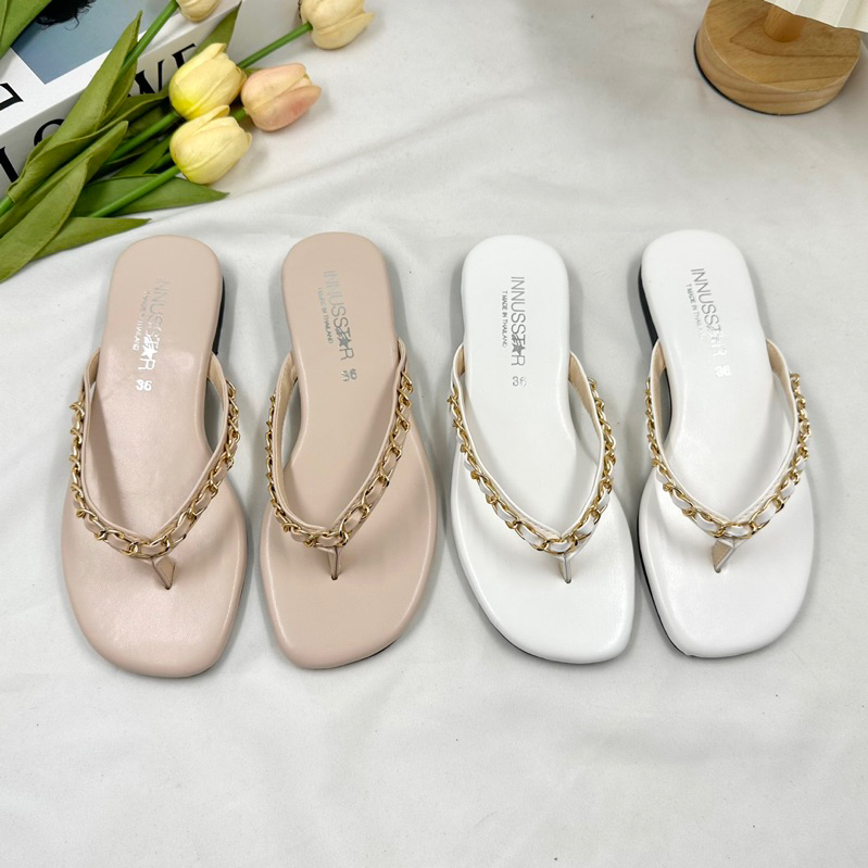 💛รองเท้าแตะหูหนีบรุ่นโซ่ทองคล้องใจ💛 รองเท้าแตะคีบหนังนิ่มพื้นนุ่มใส่ได้ทุกชุด