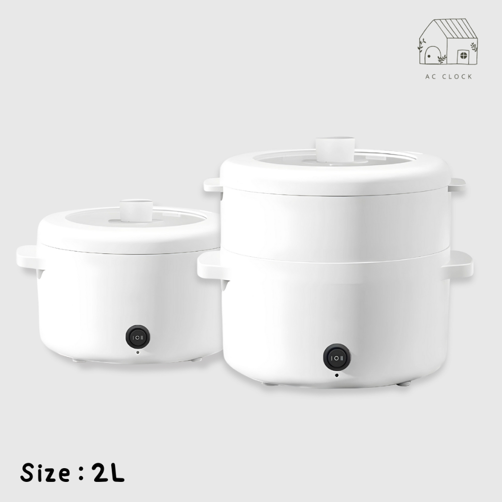 หม้อไฟฟ้า2 ลิตร ต้ม อุ่น นึ่ง ทอด (มีของแถมในตัว) เคลือบหินอ่อน
