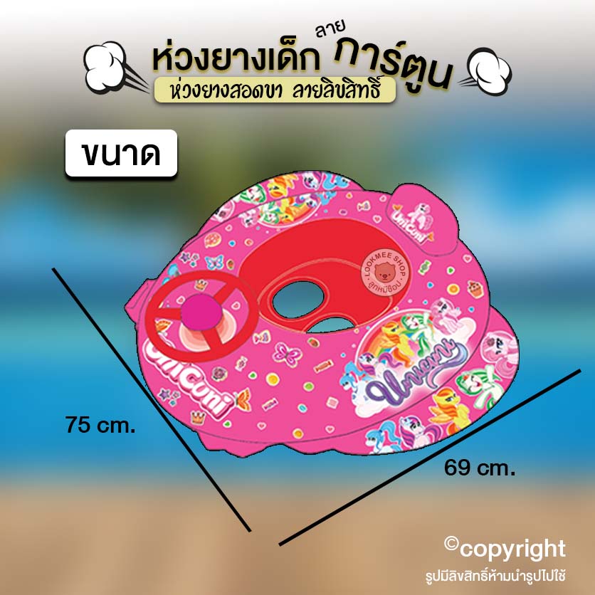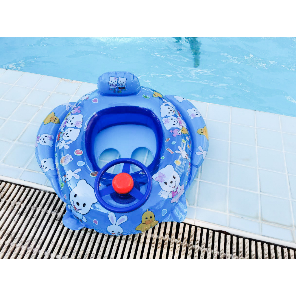 ห่วงยางสอดขาเด็ก มีพวงมาลัยหมุนได้แตรบีบกดมีเสียง ลายการ์ตูนน่ารัก ห่วงยางเด็กวัสดุอย่างดีขอบไม่มีคม