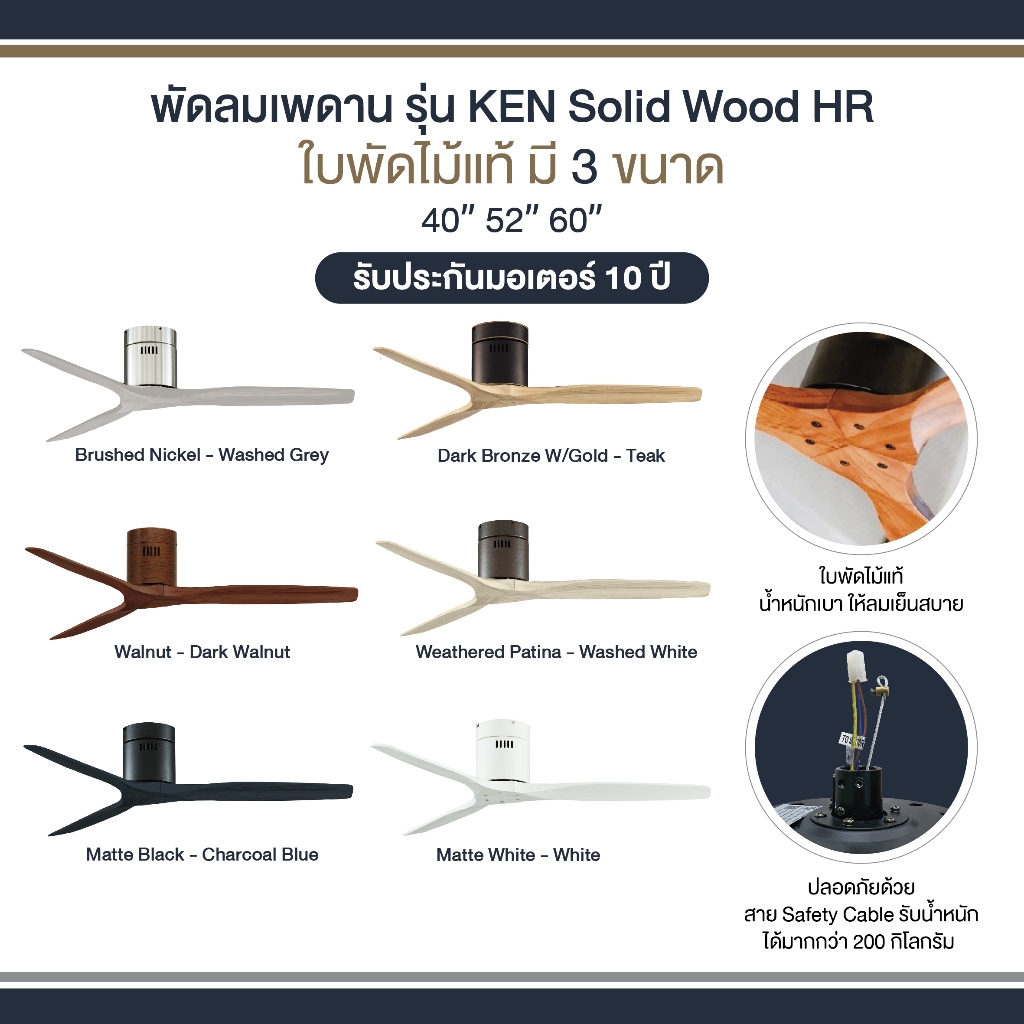 พัดลมเพดาน MR KEN รุ่น KEN Solid Wood HR DC Motor ใบพัดไม้แท้ พร้อมรีโมทคอนโทรล