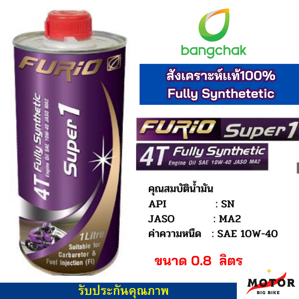 ขนาด0.8L น้ำมันเครื่องมอเตอร์ไซด์สังเคราะห์ 100% บางจาก ฟูริโอ ซุปเปอร์ 1 BCP FURiO Super1 4T Synthetic SAE 10W-40