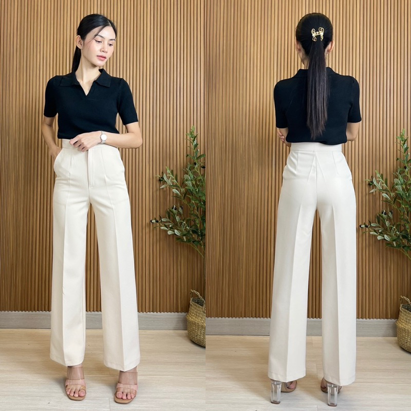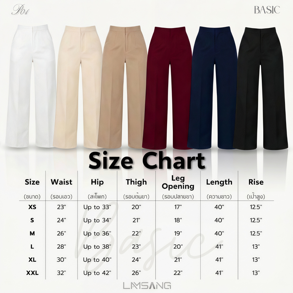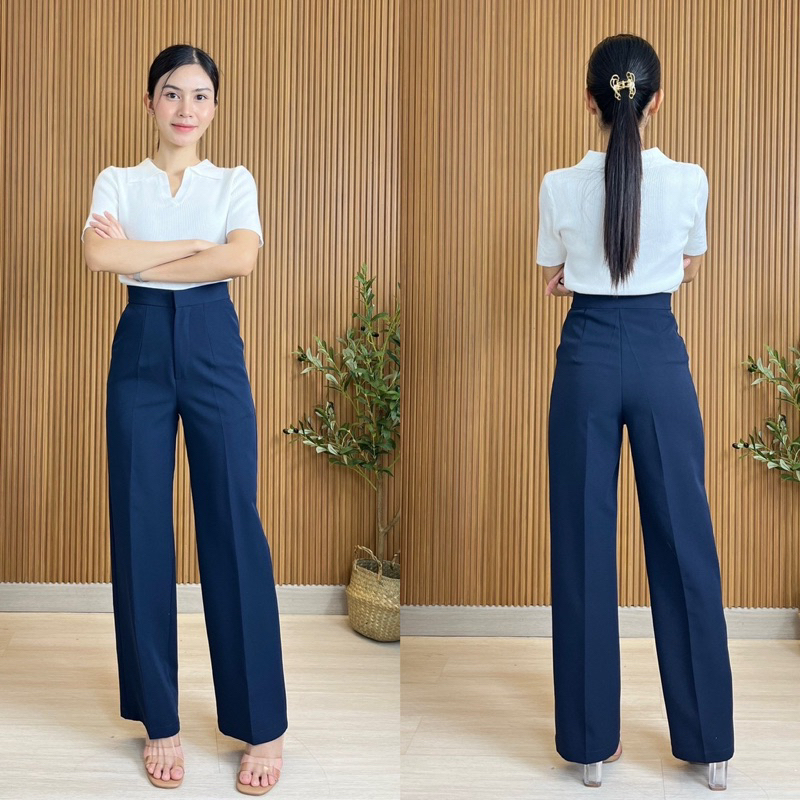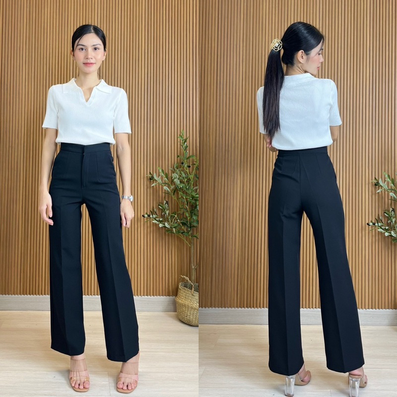 LAMSANG P01 Basic Pants กางเกงเอวสุงกระบอกกลาง