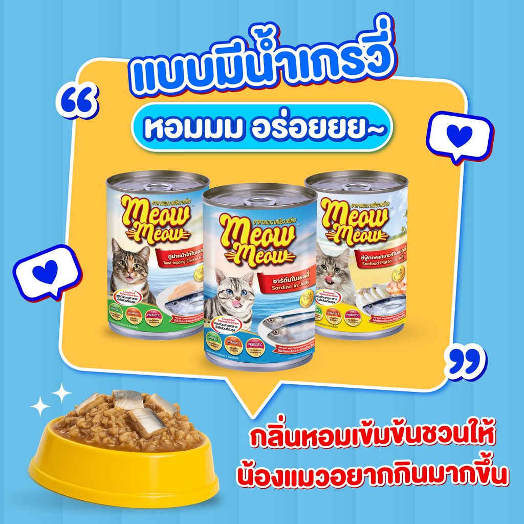 Meow Meow เหมียว เหมียว [12 กระป๋อง] อาหารเปียกแมวกระป๋อง ขนาด 400 กรัม