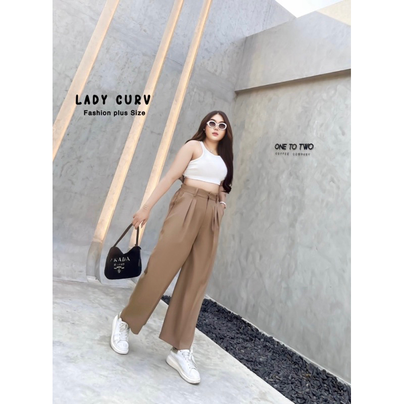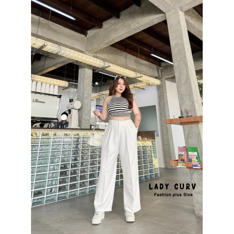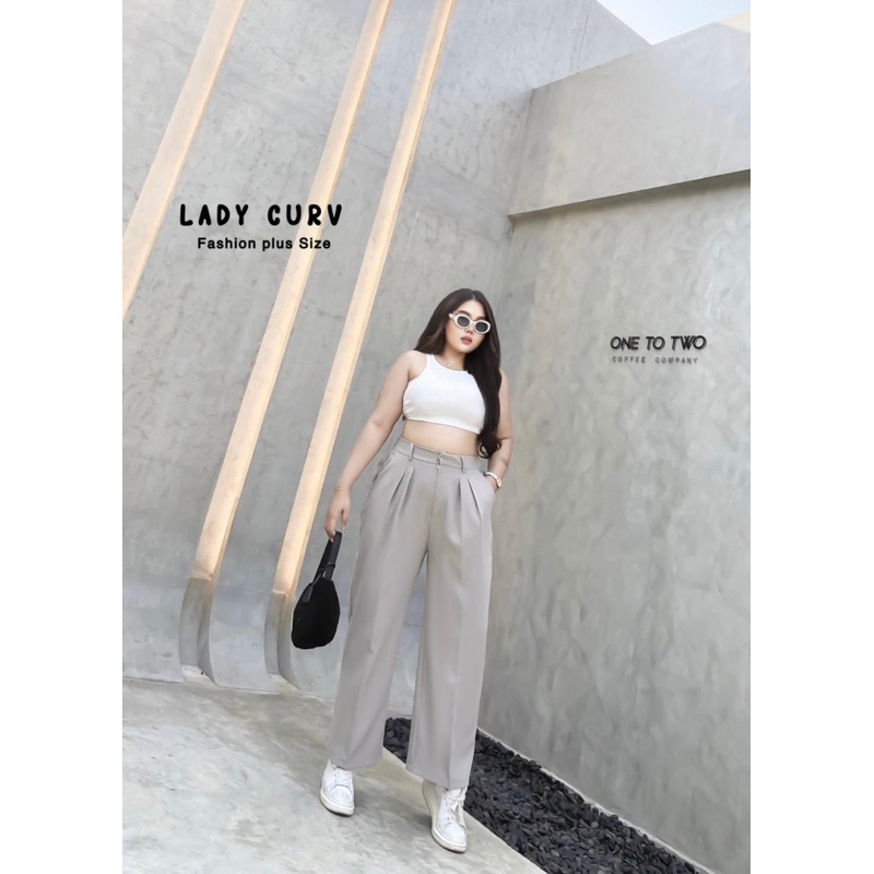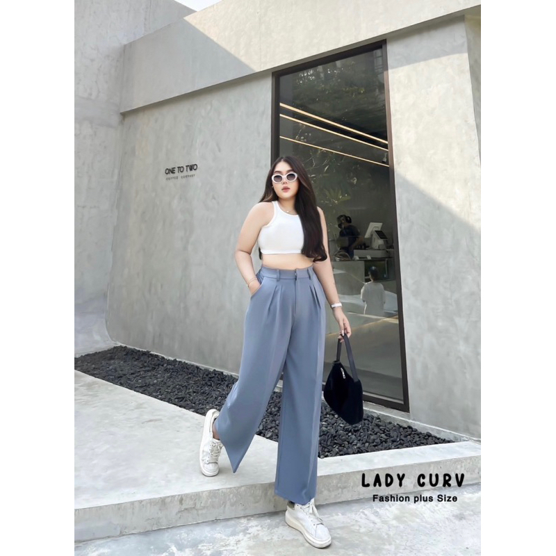 (LC) กางเกงขายาว ตะขอหน้า เอวสูง ทรงขากระบอก ดีเทลเรียบหรู ใส่เที่ยว ใส่ทำงาน เสื้อผ้าสาวอวบอ้วน พลัสไซส์ ไซส์ใหญ่