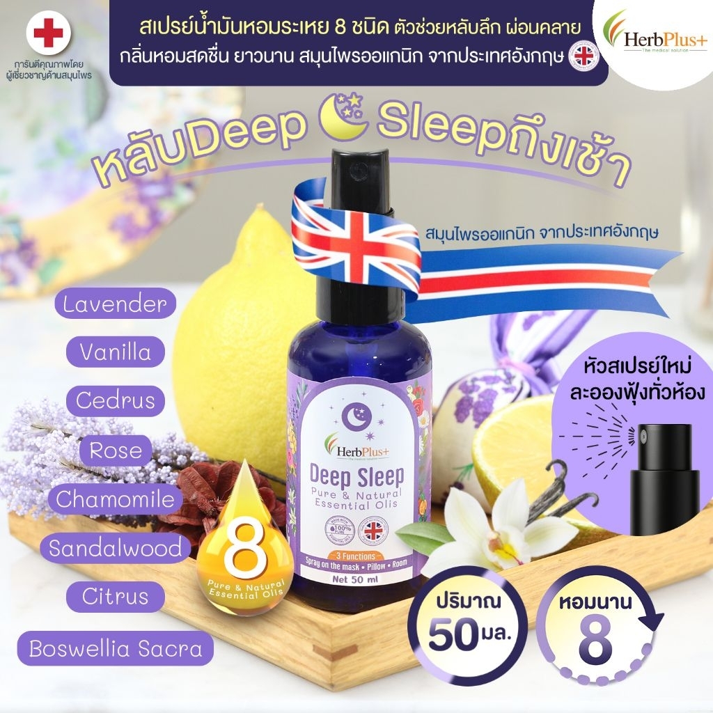 Deep Sleep ขนาด 50 ml สเปรย์น้ำมันหอม 8 ชนิด ตัวช่วยหลับลึก ผ่อนคลาย กลิ่นหอม ยาวนาน สมุนไพร UK by Mor Bank