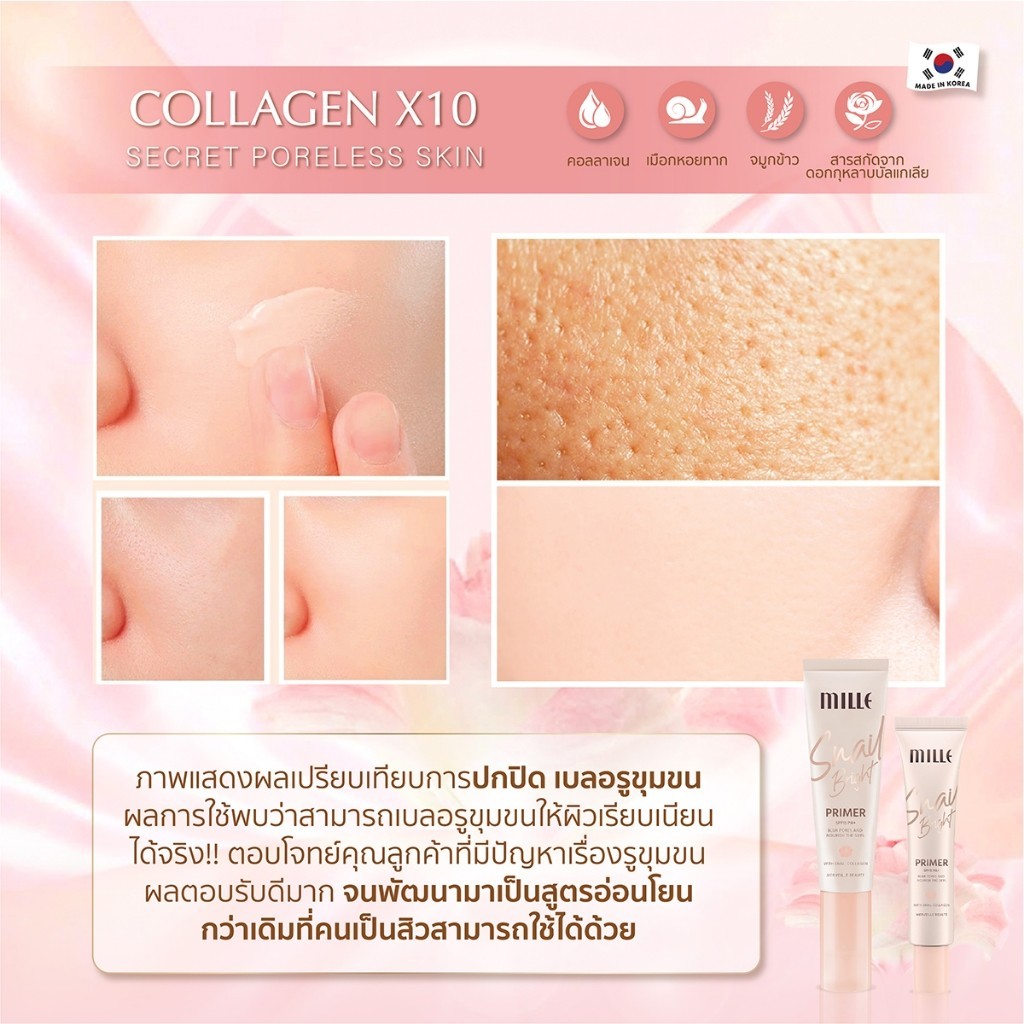 [6ซอง ยกกล่อง] Mille ไพรเมอร์เบลอรูขุมขน คุมมัน Snail Bright Primer 6 g.