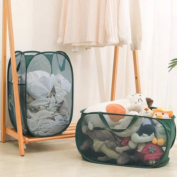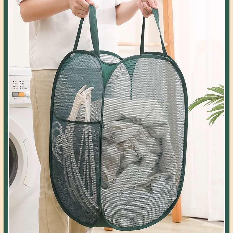 ✅พร้อมส่ง ตะกร้าใส่ผ้าพับได้ ตะกร้าตาข่ายมัลติฟังก์ชั่น มีหลายสีให้เลือก พับเก็บสะดวก