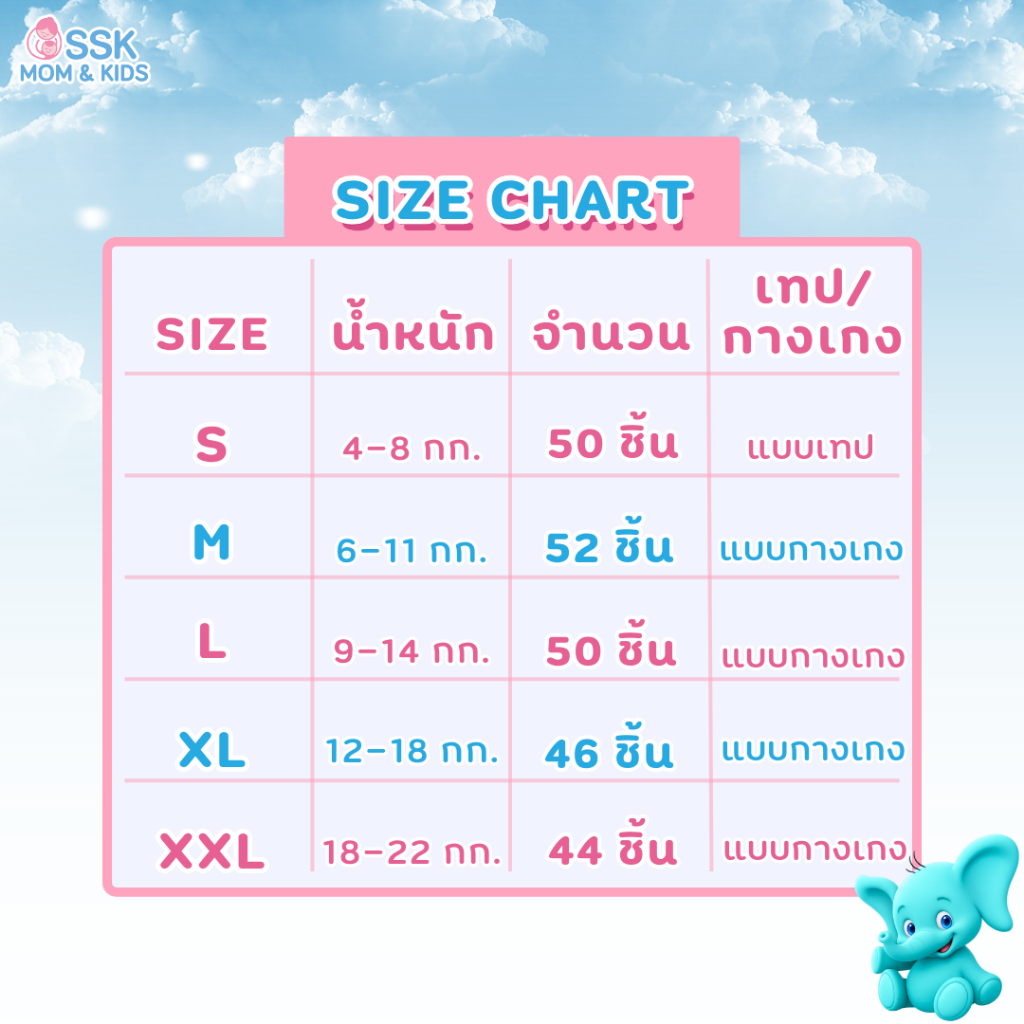 แพมเพิส แพมเพิสถูก แพมเพิสนำเข้า Unihope สีเหลือง ผ้าอ้อมเด็กสำเร็จรูป แพมเพิสเด็ก S/M/L/XL/XXL