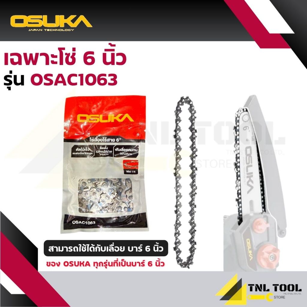 บาร์ 6 นิ้ว / โซ่ 6 นิ้ว 37ฟัน (ใช้สำหรับเลื่อยโซ่ไร้สาย 6 นิ้ว 20V. OSUKA (จำหน่ายแยกชิ้น*)