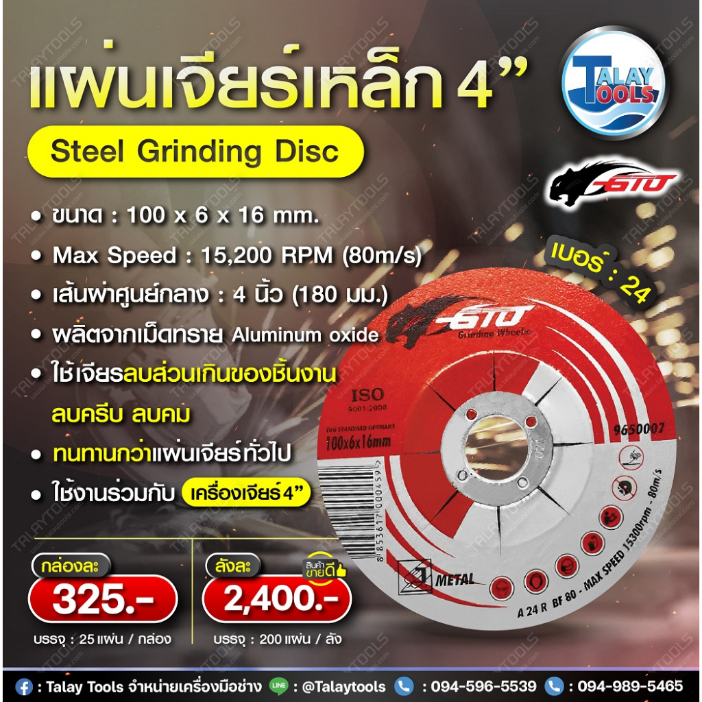 แผ่นเจียร์เหล็ก 4″ GTO เบอร์24 (4″x6mm.) 25แผ่น/1กล่อง l TALAYTOOLS