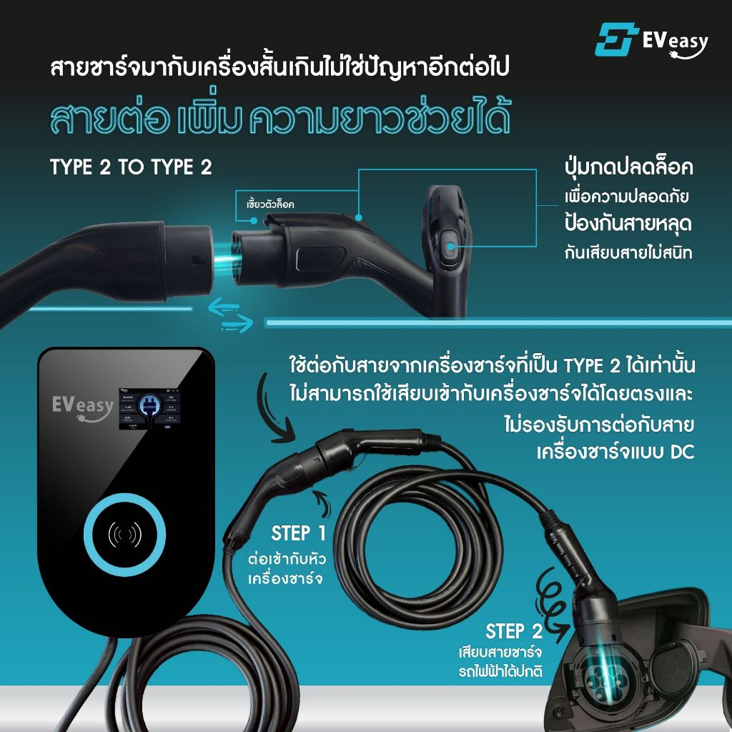 สายต่อเพิ่มความยาว EV Charger (Type 2 Extension Cable) สำหรับรถยนต์ไฟฟ้า – 7kW / 22kW