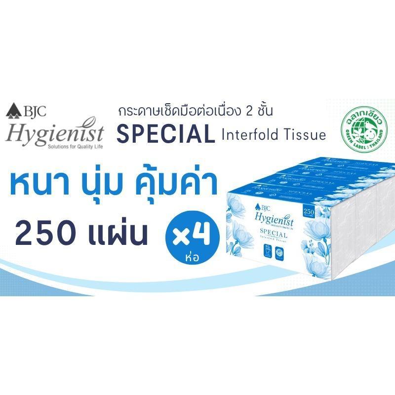BJC HYGIENIST กระดาษเช็ดมือต่อเนื่อง 2 ชั้น 250 แผ่น (4 ห่อ/แพ็ค)