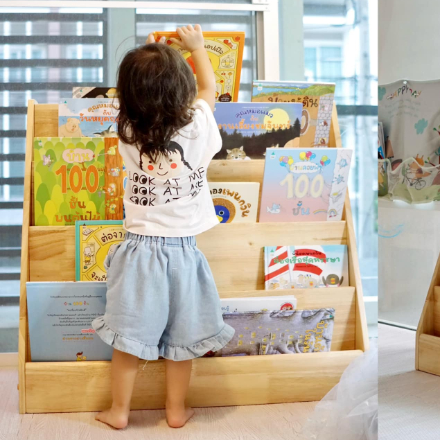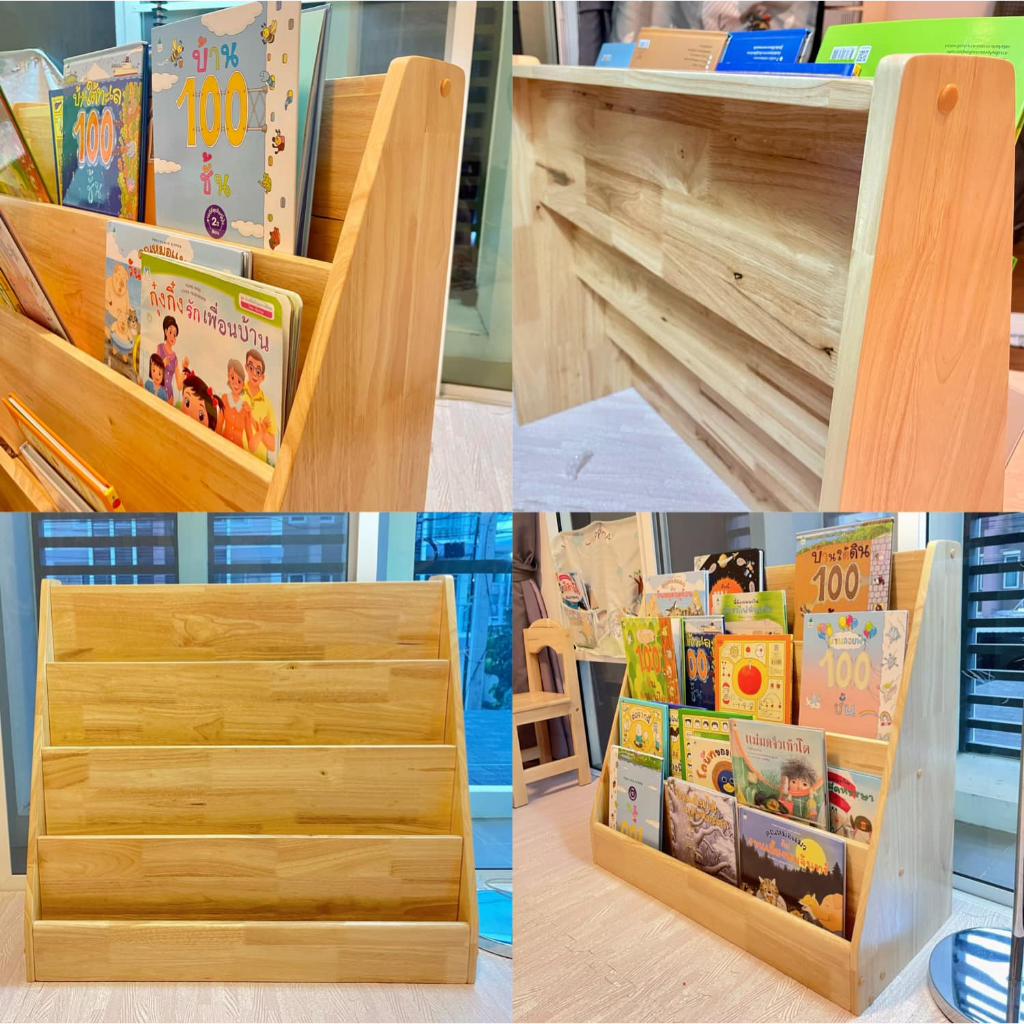 ชั้นวางหนังสือนิทานเด็กโชว์ปก ไม้ยางพาราเกรด A ช่วยเสริมสร้างพัฒนาการ Baanmainicha