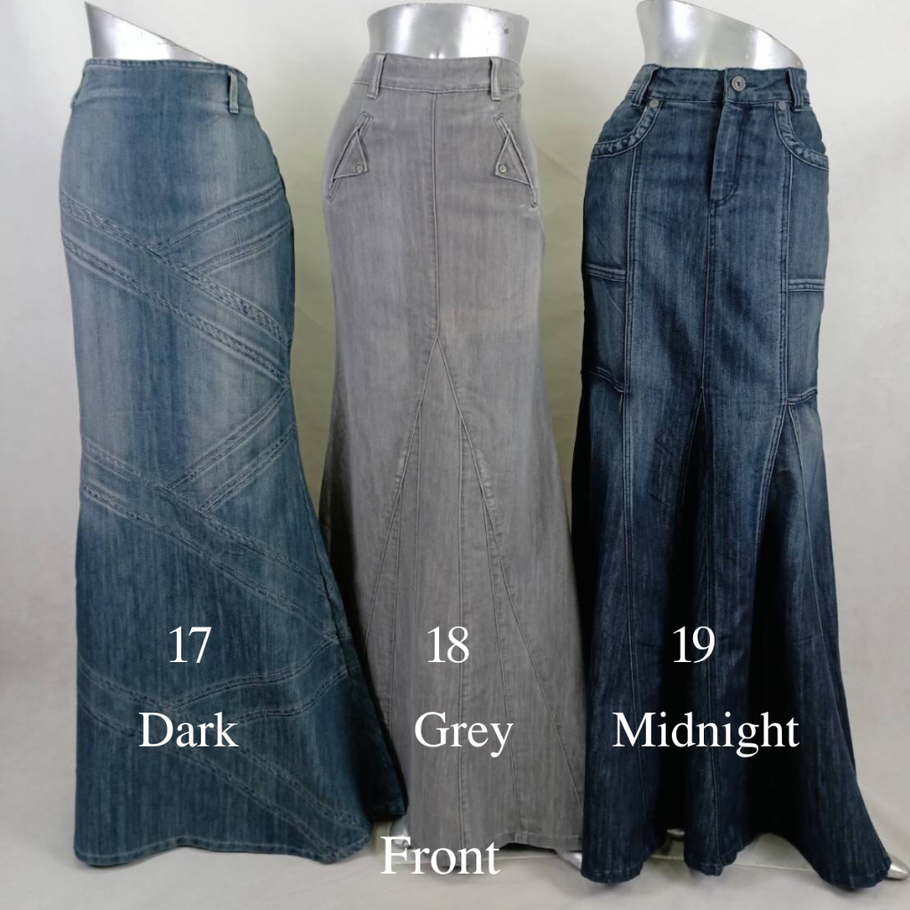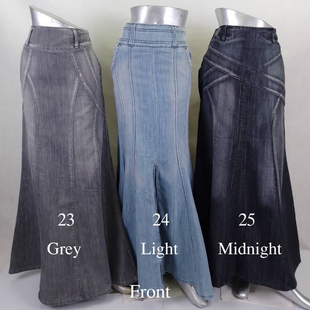 COMETชุดที่ 2 (NO 14-25)กระโปรงยาวยีนส์มุสลิม(ซิป) ( ผ้ายีนส์เกรดพรีเมี่ยม(ไม่ยืด) ฟอกไบโอบีชพ่นด่างนุ่มซิลิโคน สวยงาม