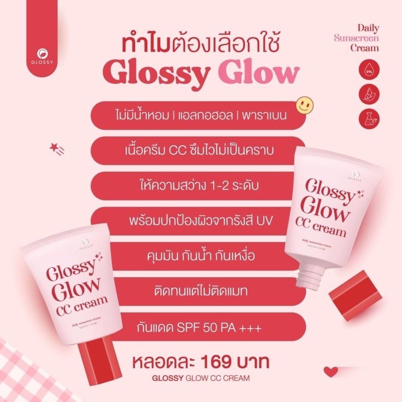 กันแดดกลอซซี่ SPF50 PA++ 2 in 1 Glossy Glow CC cream 20 ml.