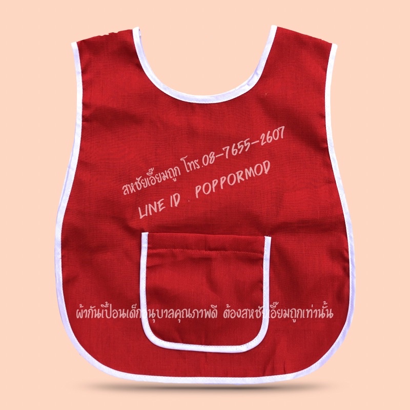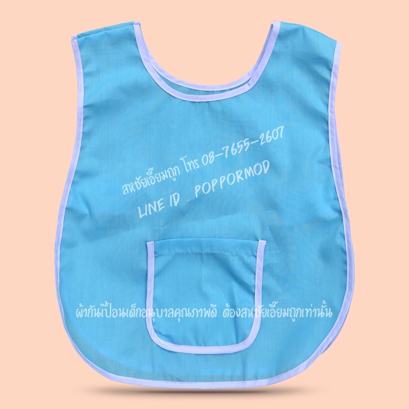 เอี๊ยมสีพื้น+ปักชื่อ_ ผ้ากันเปื้อนเด็กอนุบาล