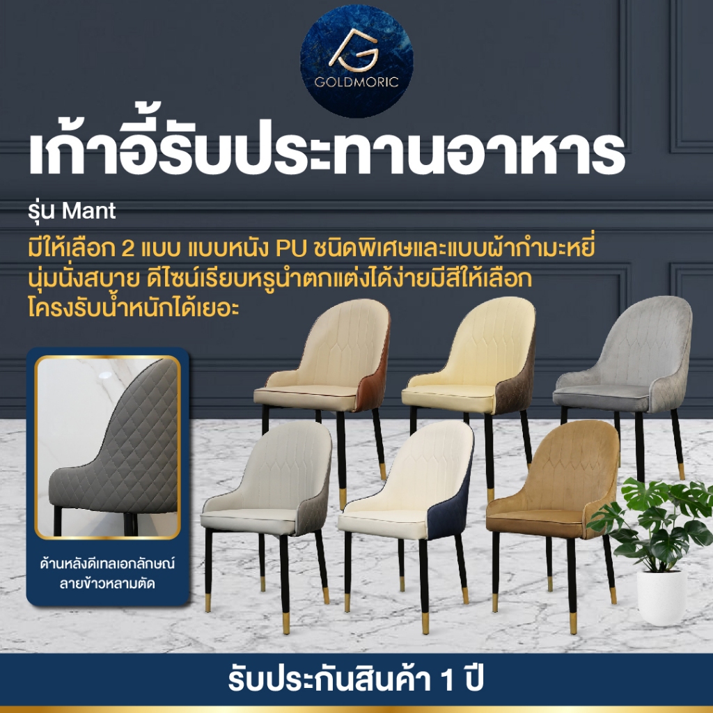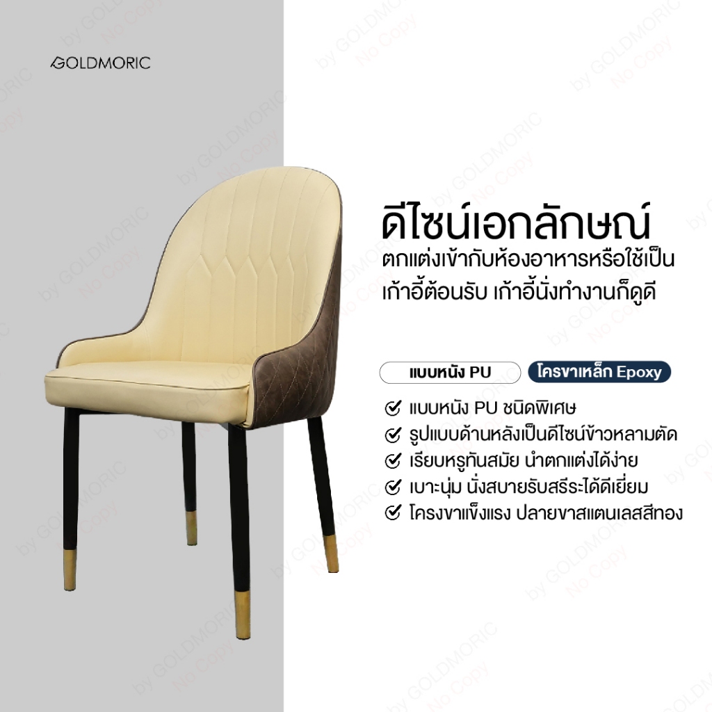 [พร้อมส่ง] GOLDMORIC เก้าอี้ทานอาหาร เก้าอี้กินข้าว รุ่น Mant หนัง PU พรีเมียม ขาสแตนเลสสีทอง สไตล์ Modern Luxury ทูโทน