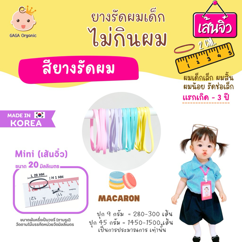 (เส้นจิ๋ว2cm) GAGA ยางรัดผมไม่กินผม 🇰🇷 ยางรัดผมเด็ก 👧🏻 แกะง่าย ผมไม่หลุด #mini2cm 9กรัม 300เส้น