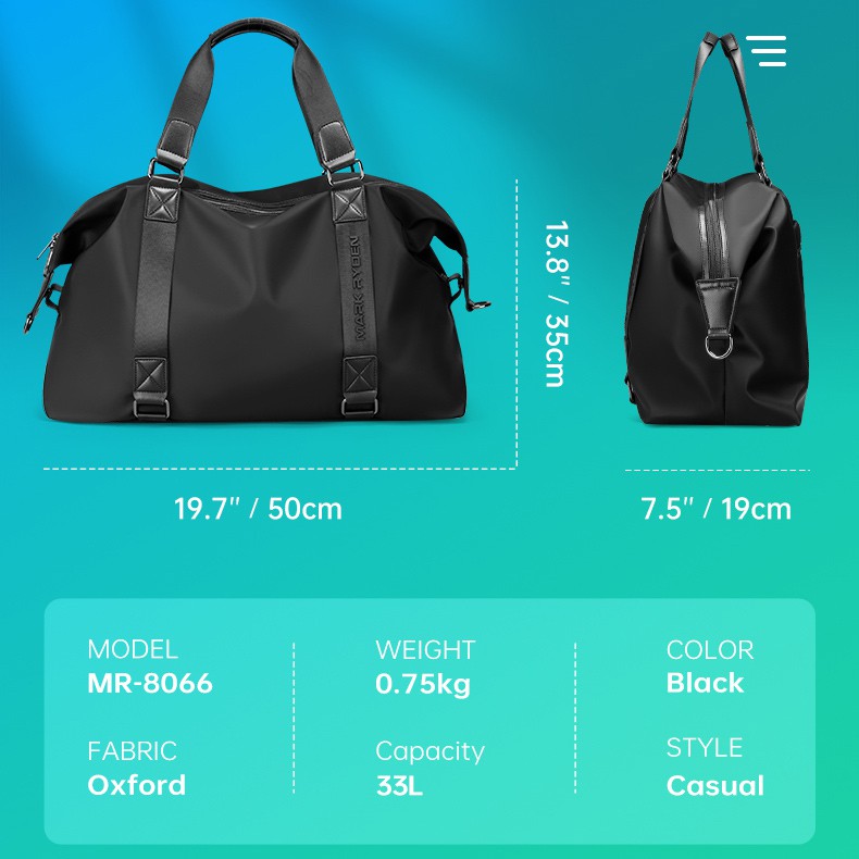 MARK RYDEN กระเป๋าเดินทาง ทรงโท้ท กันน้ํา ความจุขนาดใหญ่ สีดำ
