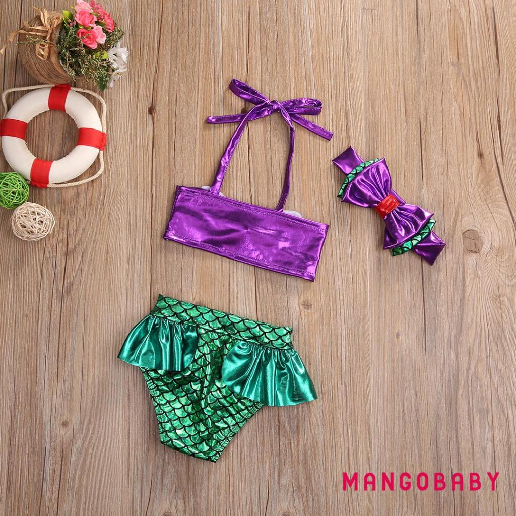 (จัดส่งในกรุงเทพฯ)-3ชิ้นชุดเจ้าหญิงเด็กสาวนางเงือกชุดบิกินี่โบว์ชุดว่ายน้ําชุดว่ายน้ําชุดว่ายน้ําเครื่องแต่งกายเด็กสาวชุดสองชิ้น