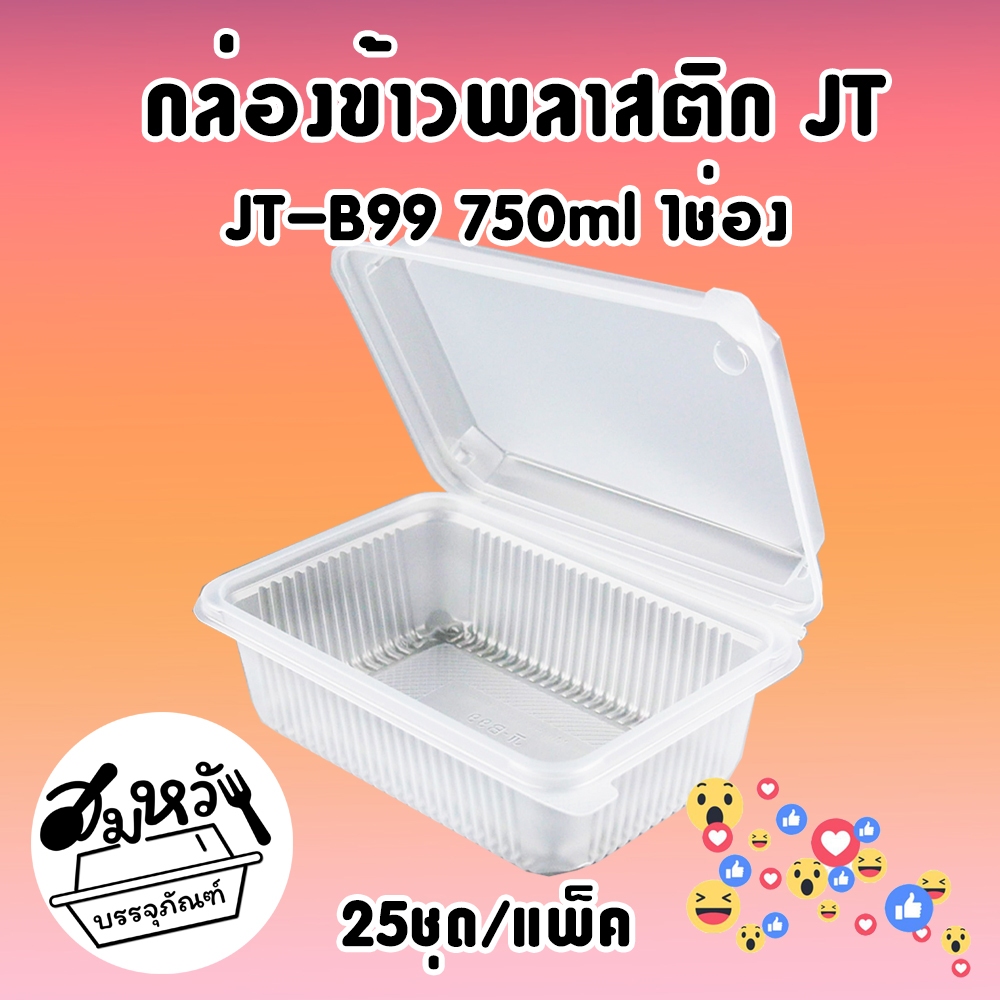 กล่องข้าวพลาสติกฝาล็อค JT ขนาด 450ml 650ml 750ml 1000ml เข้าไมโครเวฟได้ (25ชิ้น/แพ็ค)