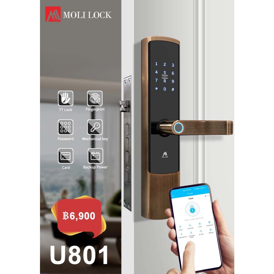 Digital Door Lock รุ่นใหม่ 2026 รุ่นกันน้ำ ส่วนด้านนอก รุ่น U801 <Bluetooth Built-in> Application ใช้งานง่าย