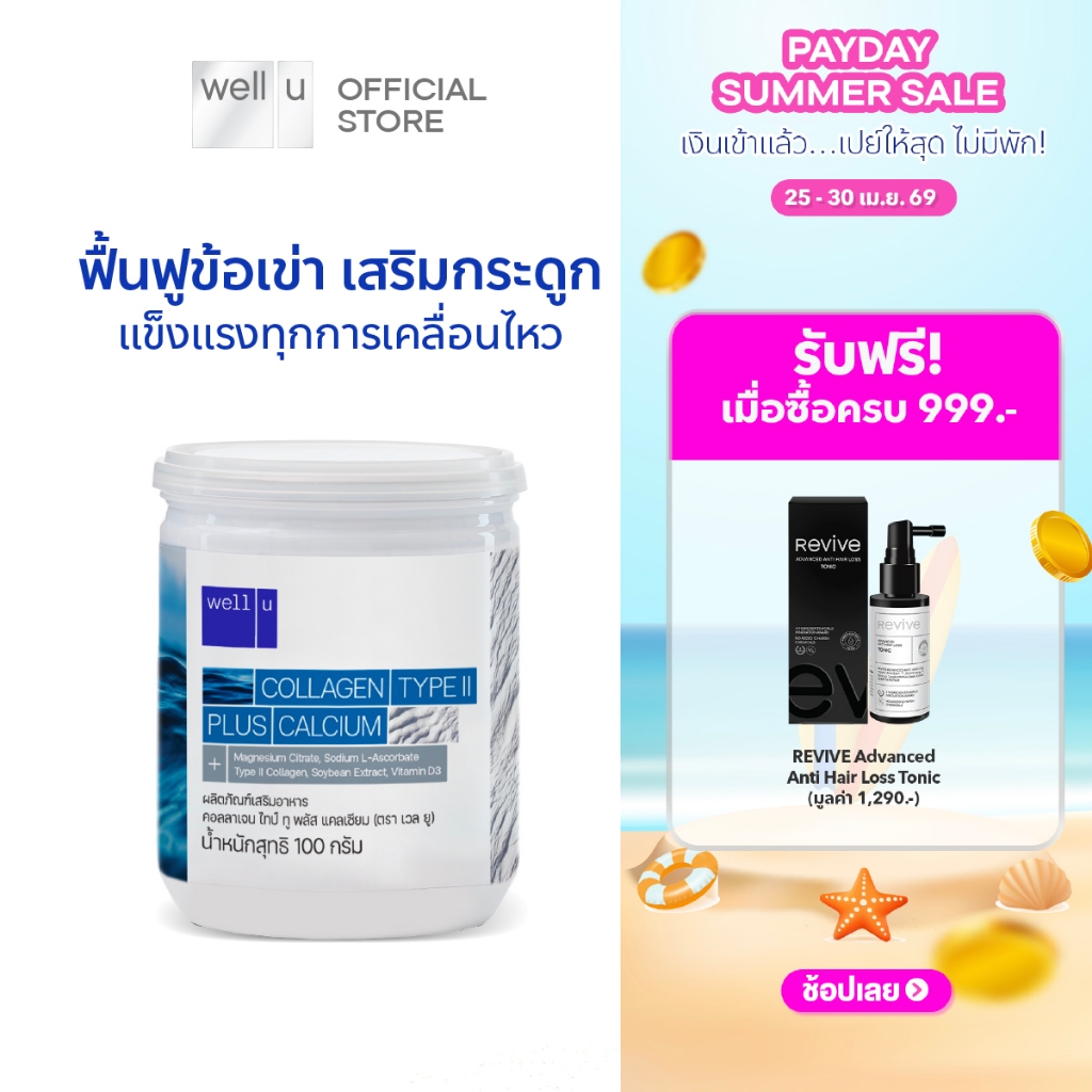 well u Collagen Type ll Plus Calcium [1 กระปุก] คอลลาเจน ไทป์ทู พลัส แคลเซียม ผิวและข้อเข่าดี บำรุงกระดูก 105,000 mg.