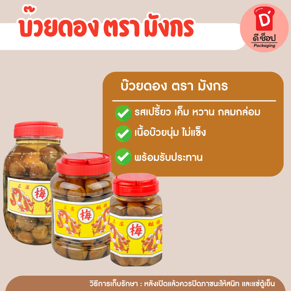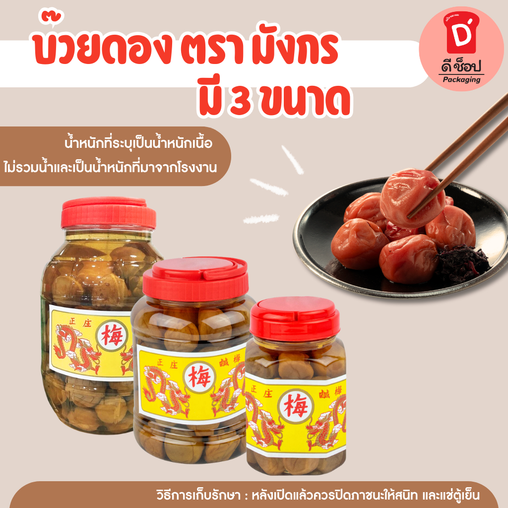 (ตรา มังกร) บ๊วยดอง มี 3 ขนาด พร้อมทาน ชงเครื่องดื่มได้ บ๊วยดอง โซดา ลูกใหญ่เต็มคำ เนื้อสัมผัสอร่อย
