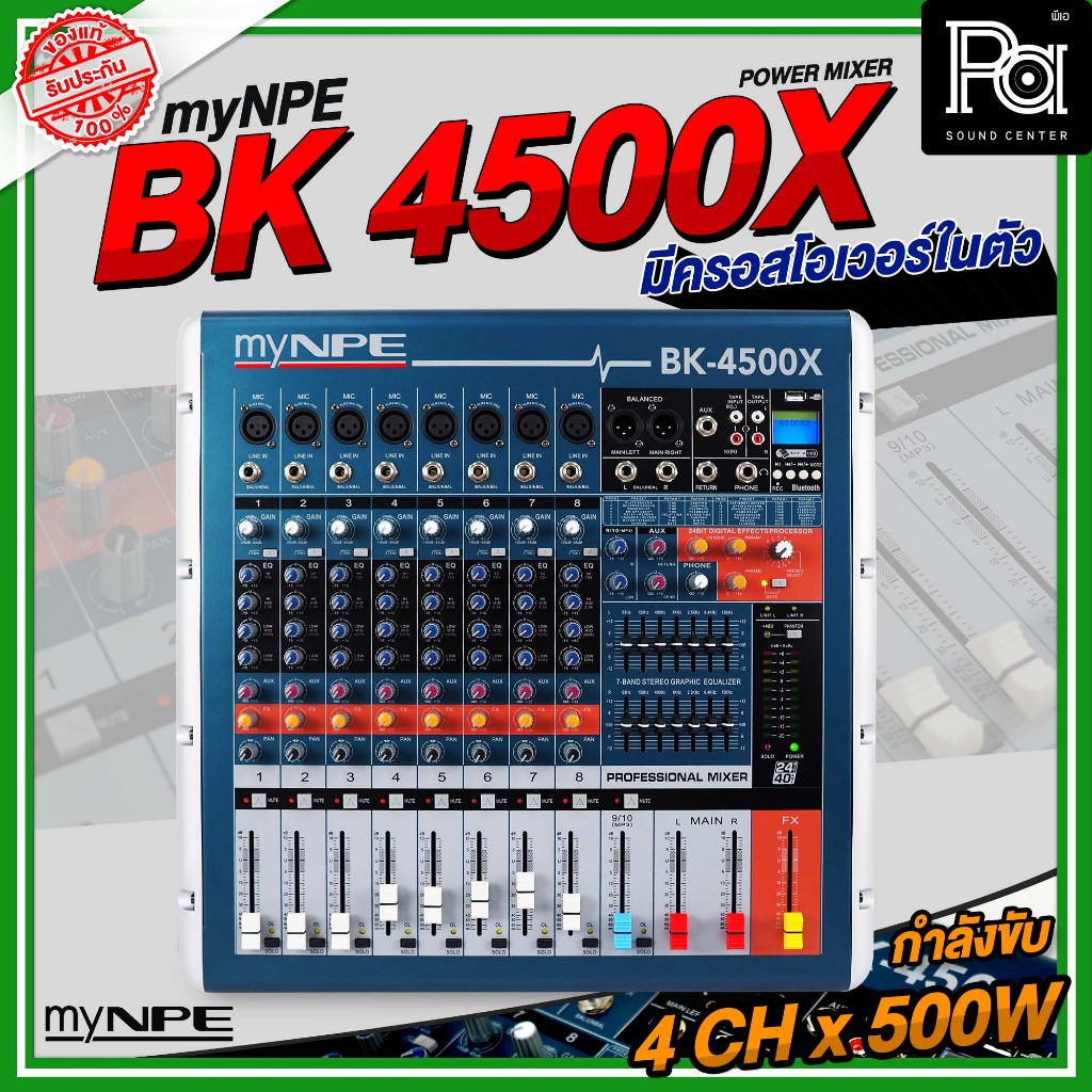 myNPE BK 4500X เพาเวอร์มิกเซอร์ ครอสในตัว BK4500 4CH X 500w แยกกลางเบส 4 แชลแนล BK4500X พีเอซาวด์