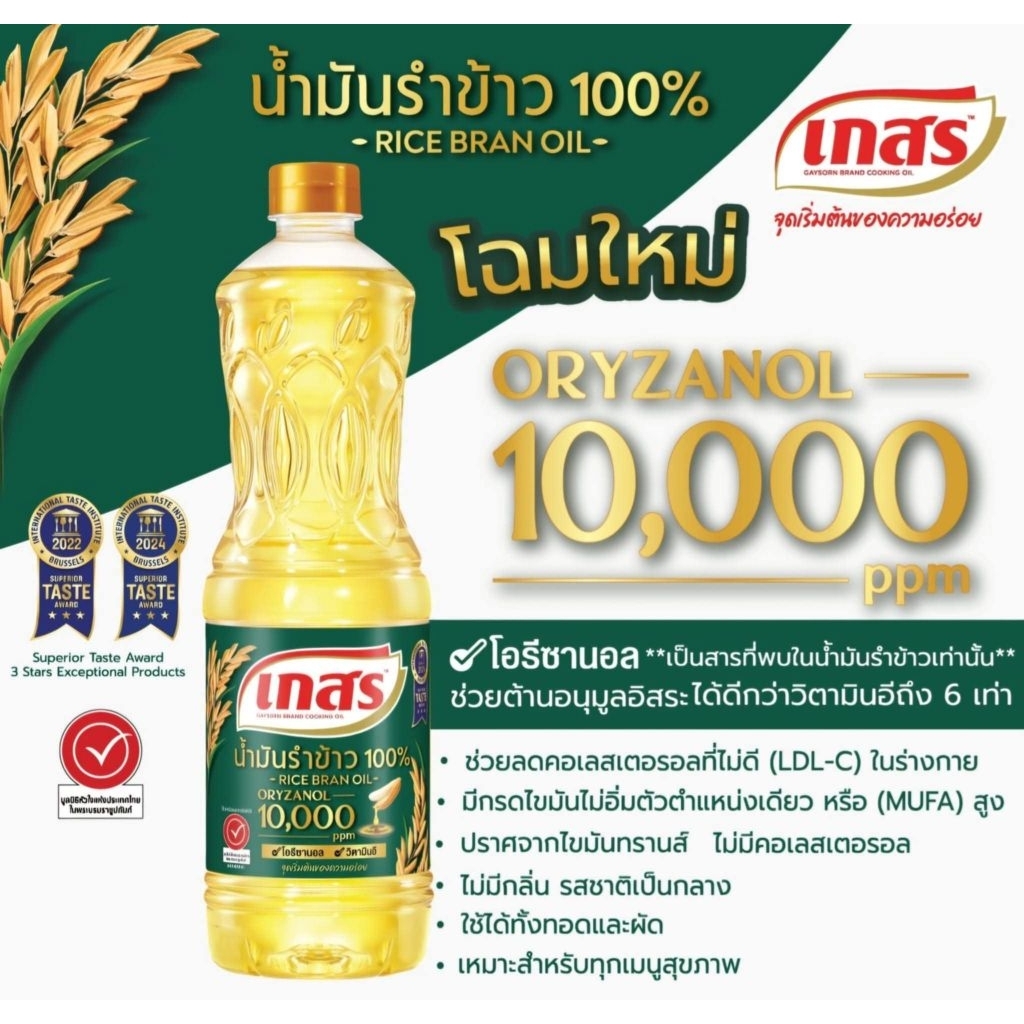 [ยกลัง] น้ำมันรำข้าว100% ตราเกสร โอรีซานอล 10,000ppm (1ลิตร×12ขวด)