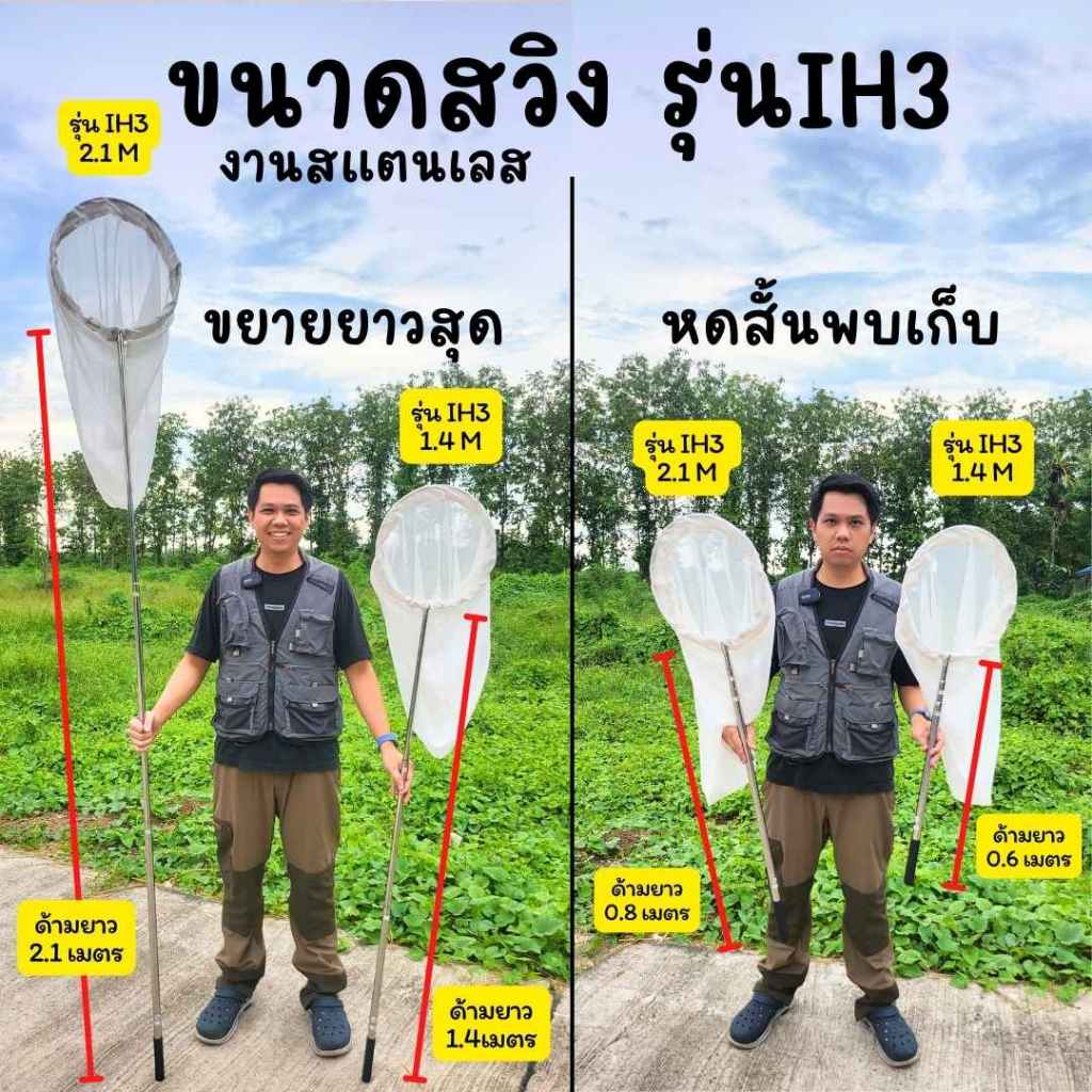 สวิงจับแมลง รุ่นIH3 รุ่นท๊อปดีที่สุด ผลิตจากสแตนเลส แข็งแรงทนทาน ปากสวิงพับได้ด้ามสวิงยืดหด sweepnet