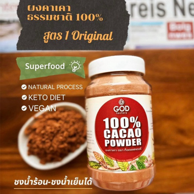 ผงคาเคาออแกร์นิคสกัดเย็น ขนาด 200g. Cacao Powder Organic 💯