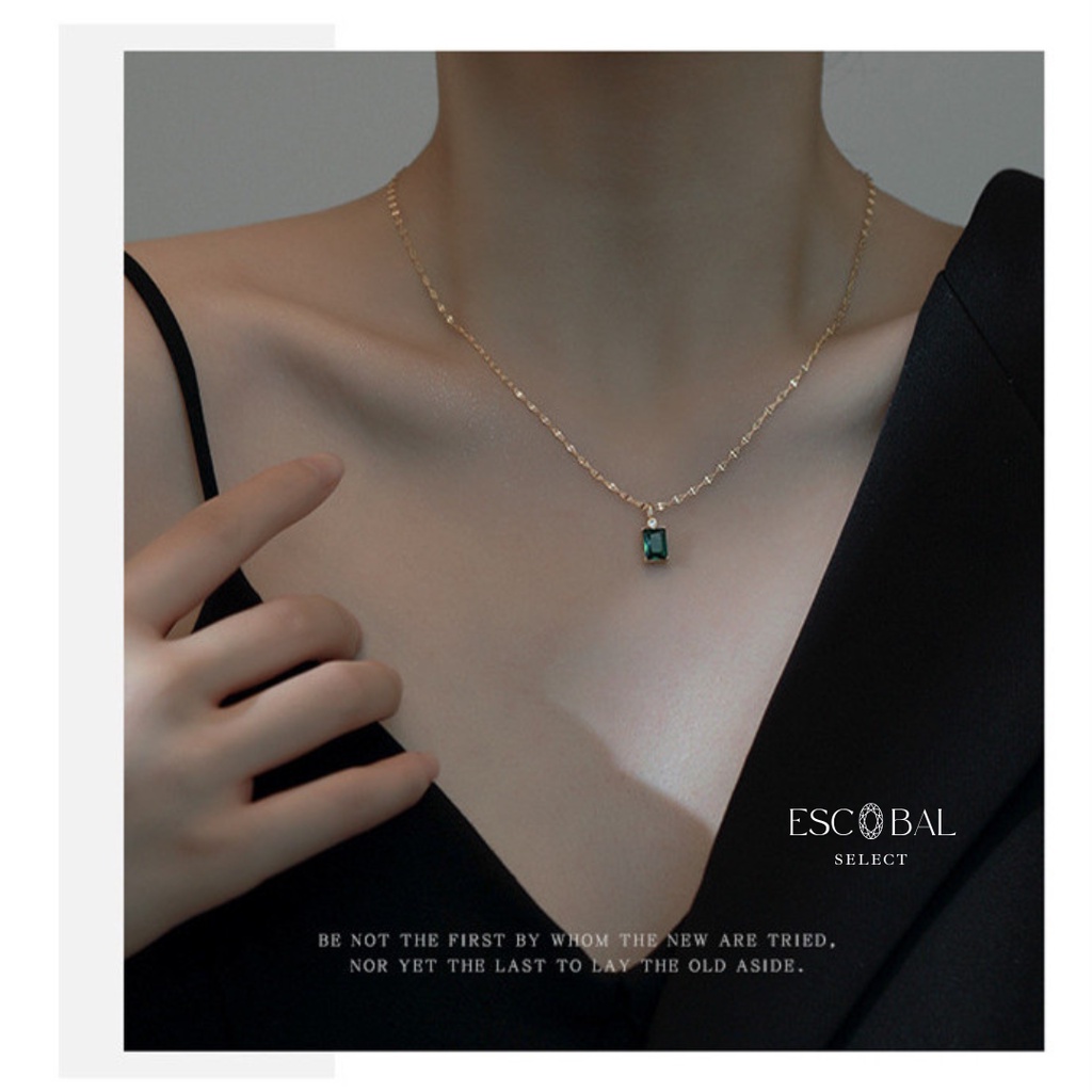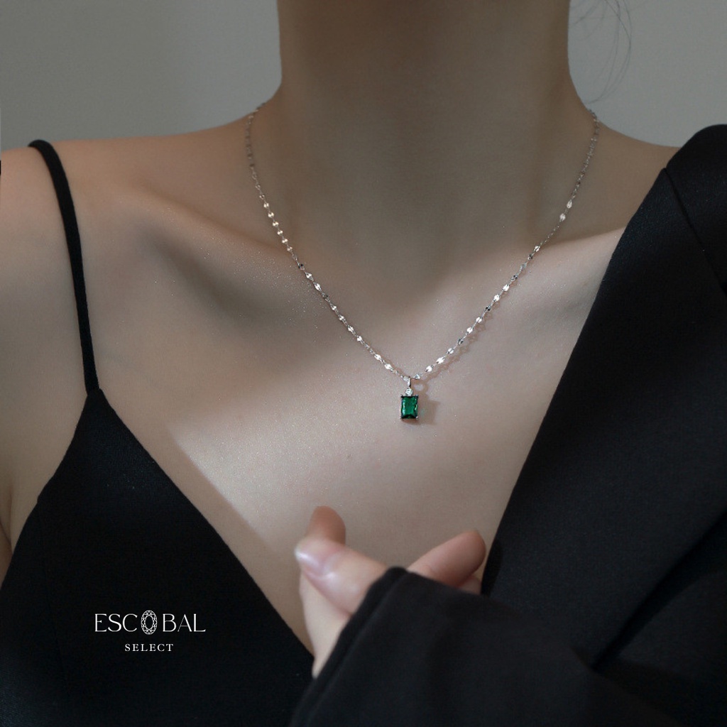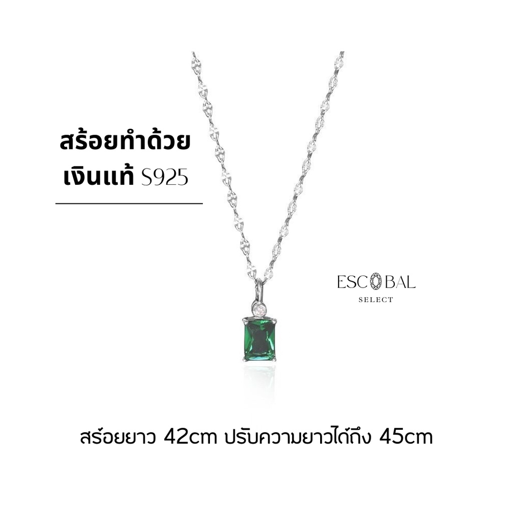 ESCOBAL สร้อยคอเงินแท้ GREEN EYED MYSTERY สร้อยคอเพชร มรกตอัญมณีสีเขียว สร้อยคอผู้หญิง วาเลนไทน์