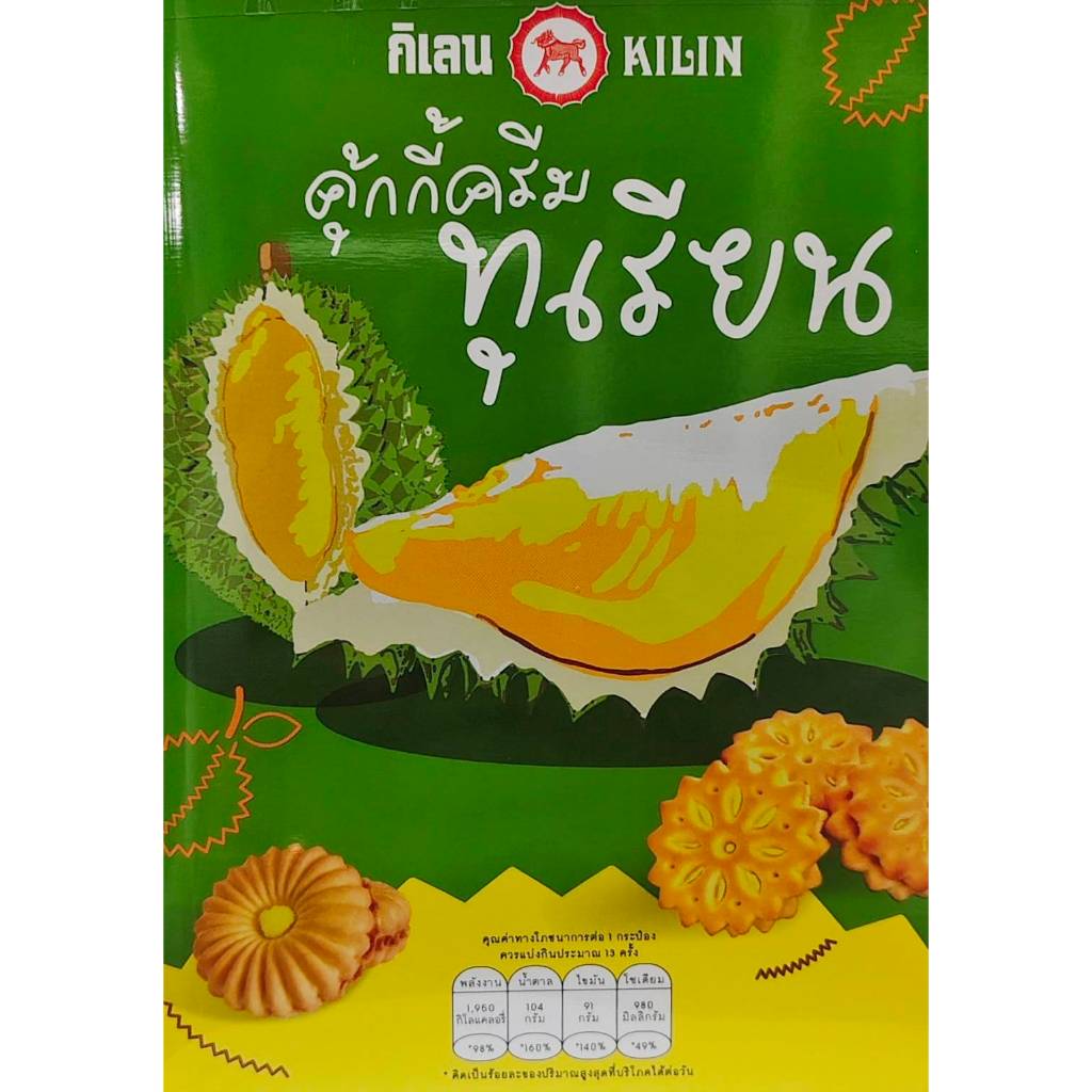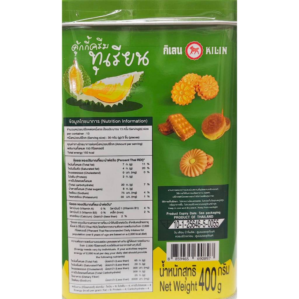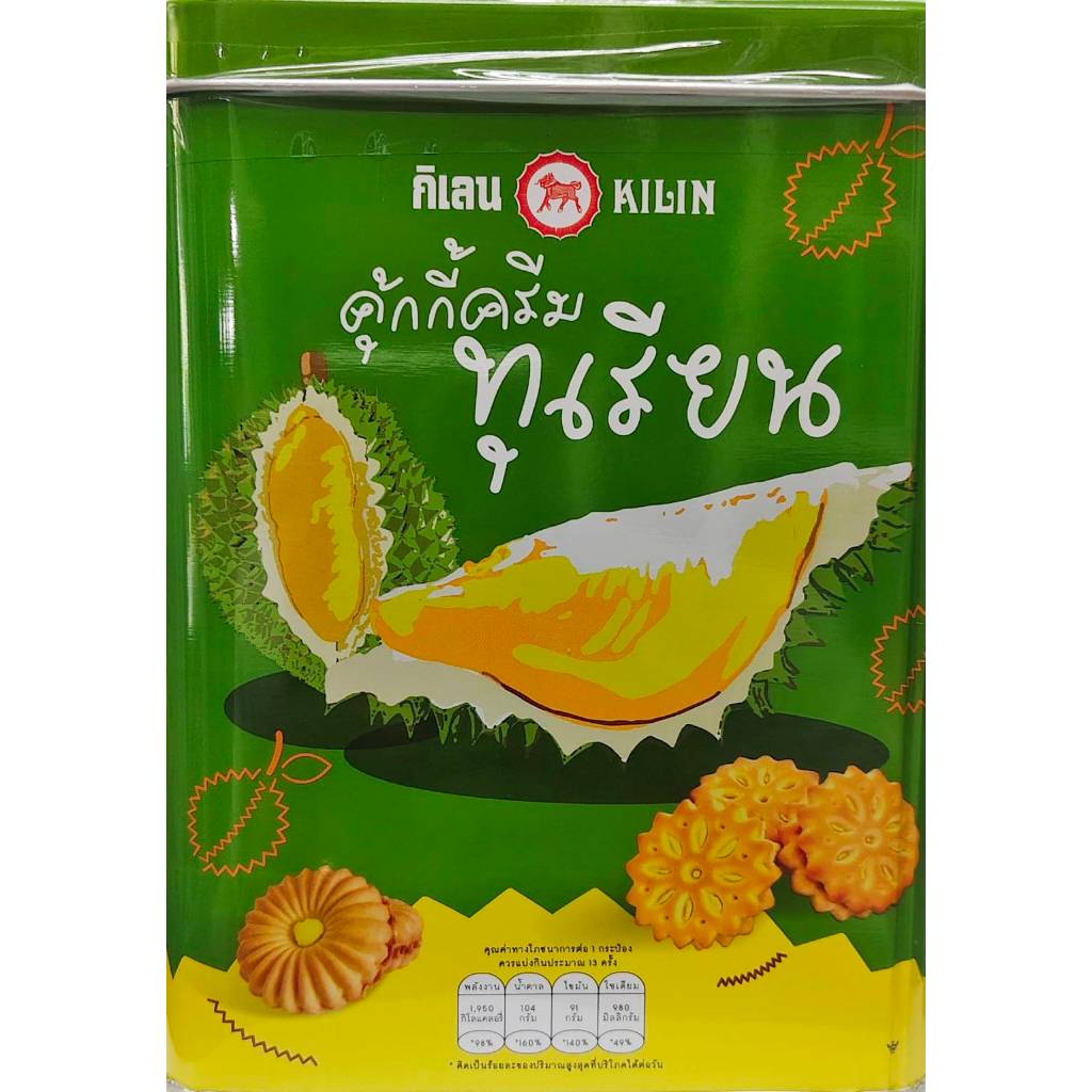 กิเลน ขนมปังปิ๊บจิ๋วพิมพ์ลาย คุ้กกี้ไส้ครีมทุเรียน น้ำหนัก 400 กรัม 1 ปิ๊ป