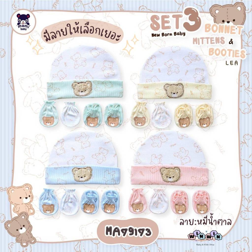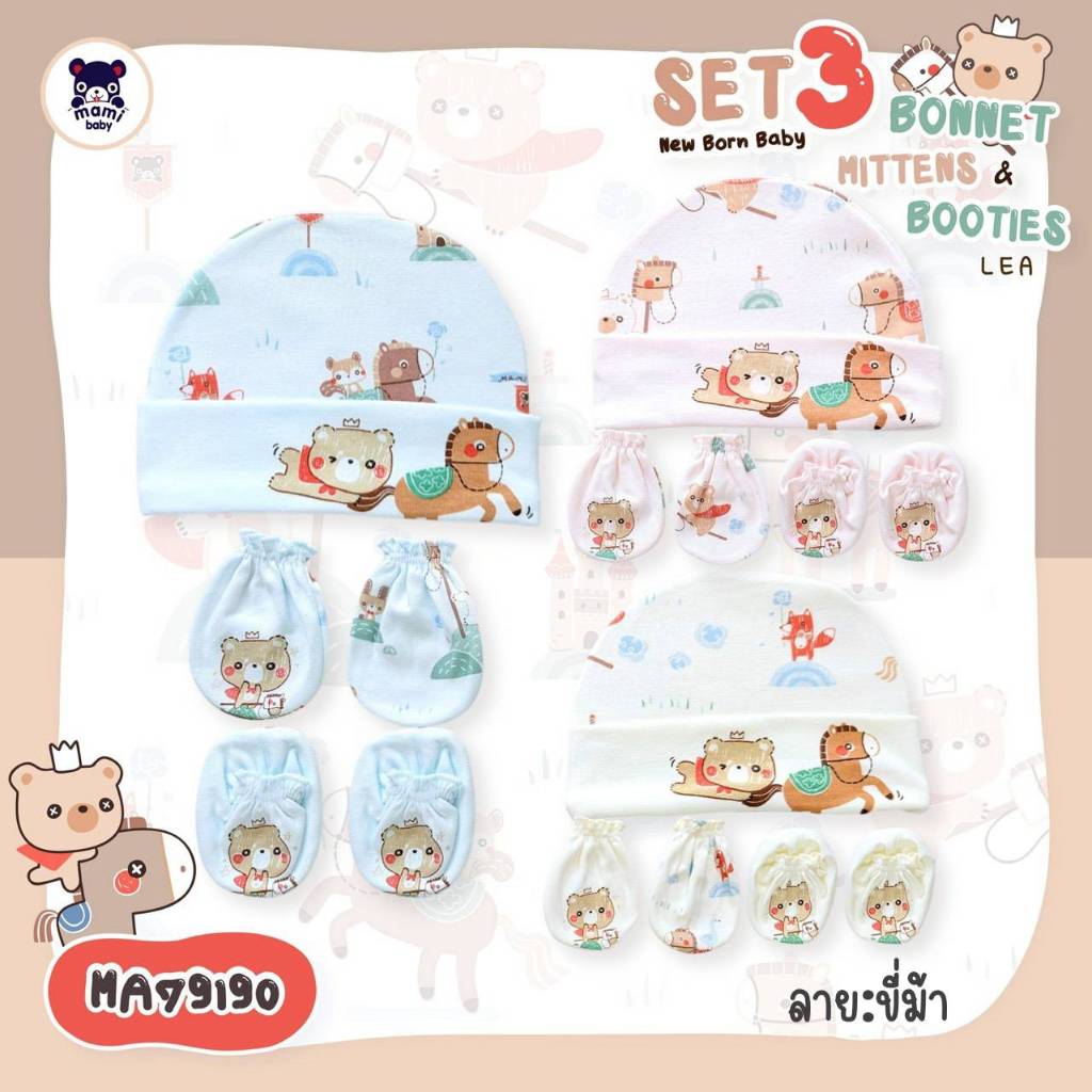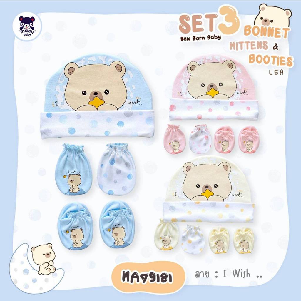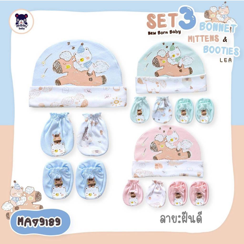 Mami baby เซ็ตหมวก ถุงมือ ถุงเท้า เด็กแรกเกิด ผ้านิ่ม ลายน่ารัก