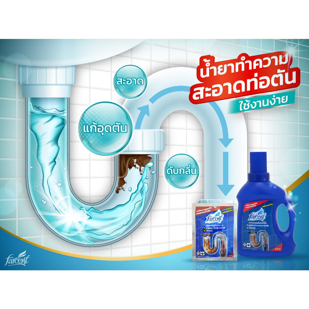 ฟาร์เซ็นท์ ผลิตภัณฑ์ขจัดท่อตัน ชนิดเกล็ด 375 ก. - Farcent Drain Opener For Piper 375 g.