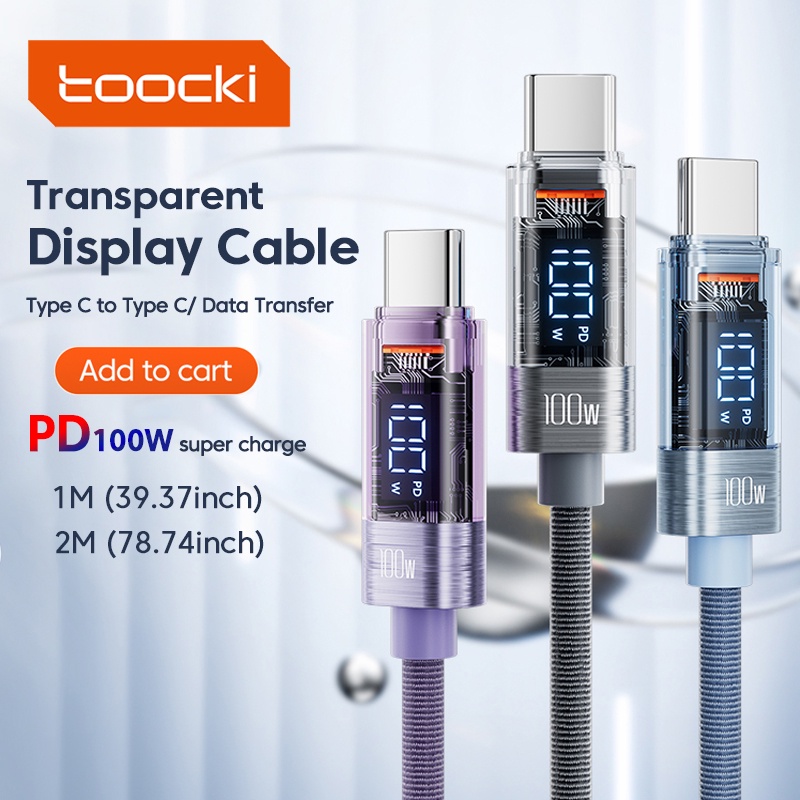 Toocki 100W สายเคเบิล Type C เป็น Type C PD 3.0 QC 4.0 ชาร์จเร็ว USB C เป็น USB C สําหรับ Xiaomi Samsung Type C สายเคเบิล