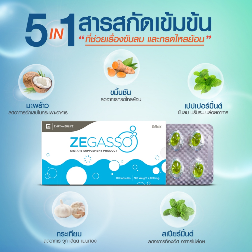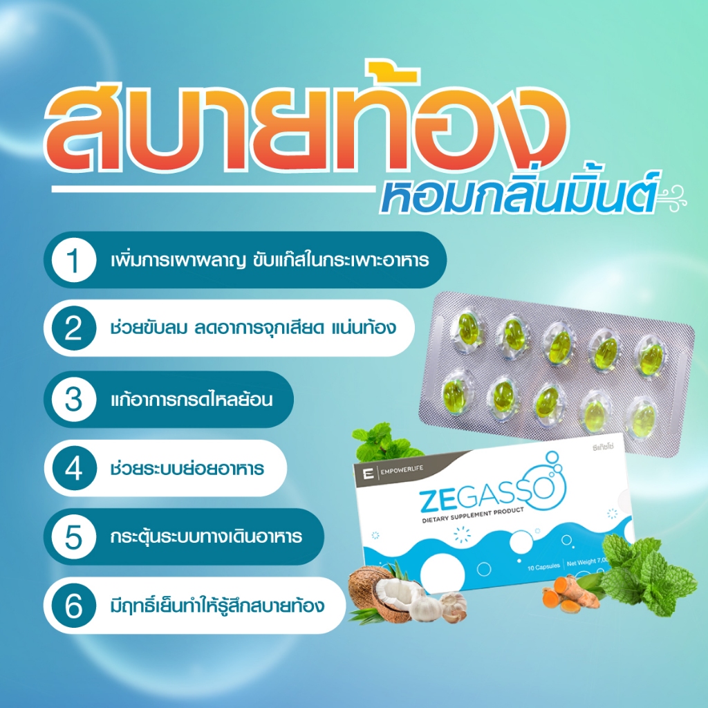 Ze-Gasso สมุนไพรแท้ ลดกรดไหลย้อน แน่นท้อง ขับลม ช่วยย่อย | 3 แผง 30 แคปซูล คุ้มค่า [สำหรับทานต่อเนื่อง 10–15 วัน]