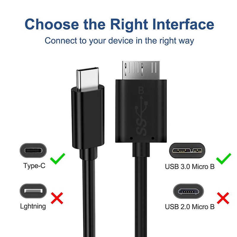 คลังสินค้าพร้อมUSB 3.1 Type C ถึง USB 3.0 Micro B Cable Connector Data Cable for Hard Drive สมาร์ทโฟน 5GBPS Sync Data Transfer Cord