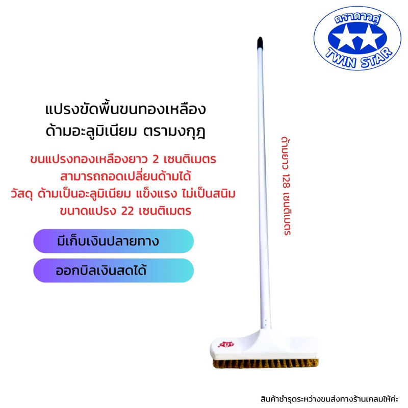(ด้ามอลูมิเนียม128cm.150cm.) แปรงขัดพื้นขนทองเหลือง