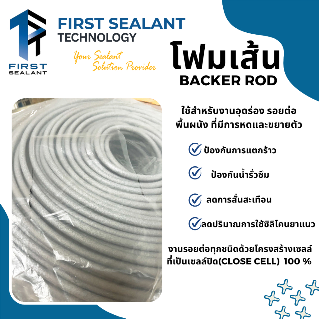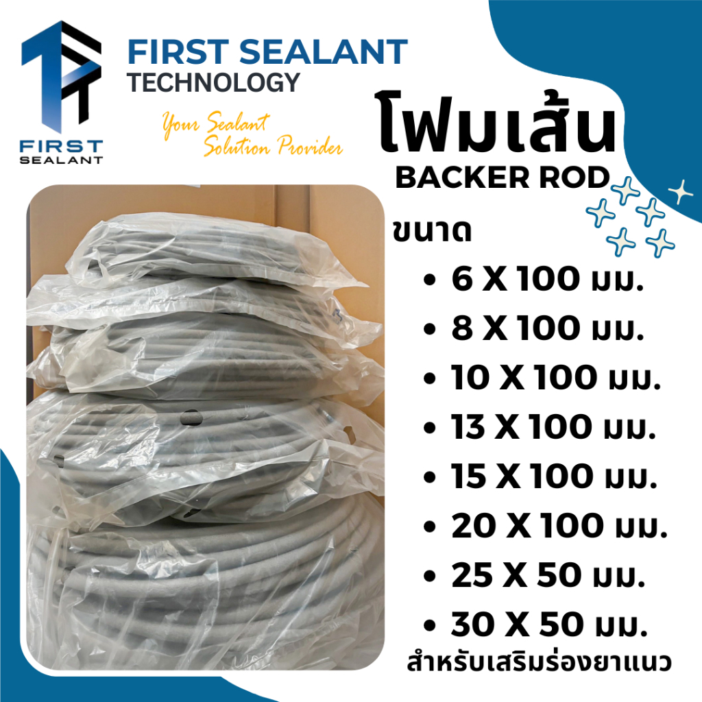 โฟมเส้น แบบกลม เสริมร่องยาแนว โฟมเส้นอุดรอยต่อ Backer Rod ขนาด 6,8,10,13,15,20 มม. [First Sealant]